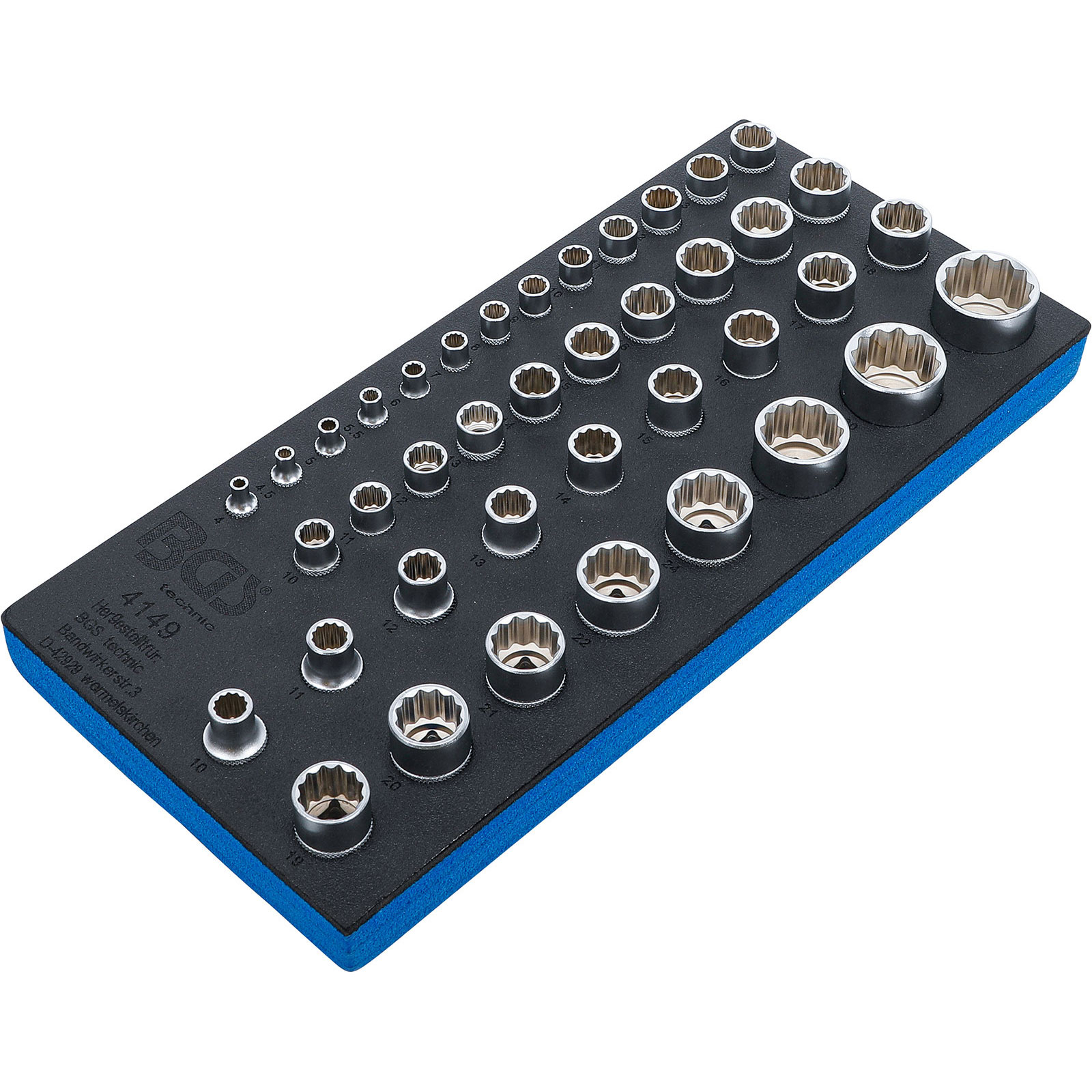- 1x BGS Werkstattwageneinlage 1/3: Steckschlüssel-Einsätze Zwölfkant 6,3 mm (1/4") / 10 mm (3/8") / 12,5 mm (1/2") 40tlg.