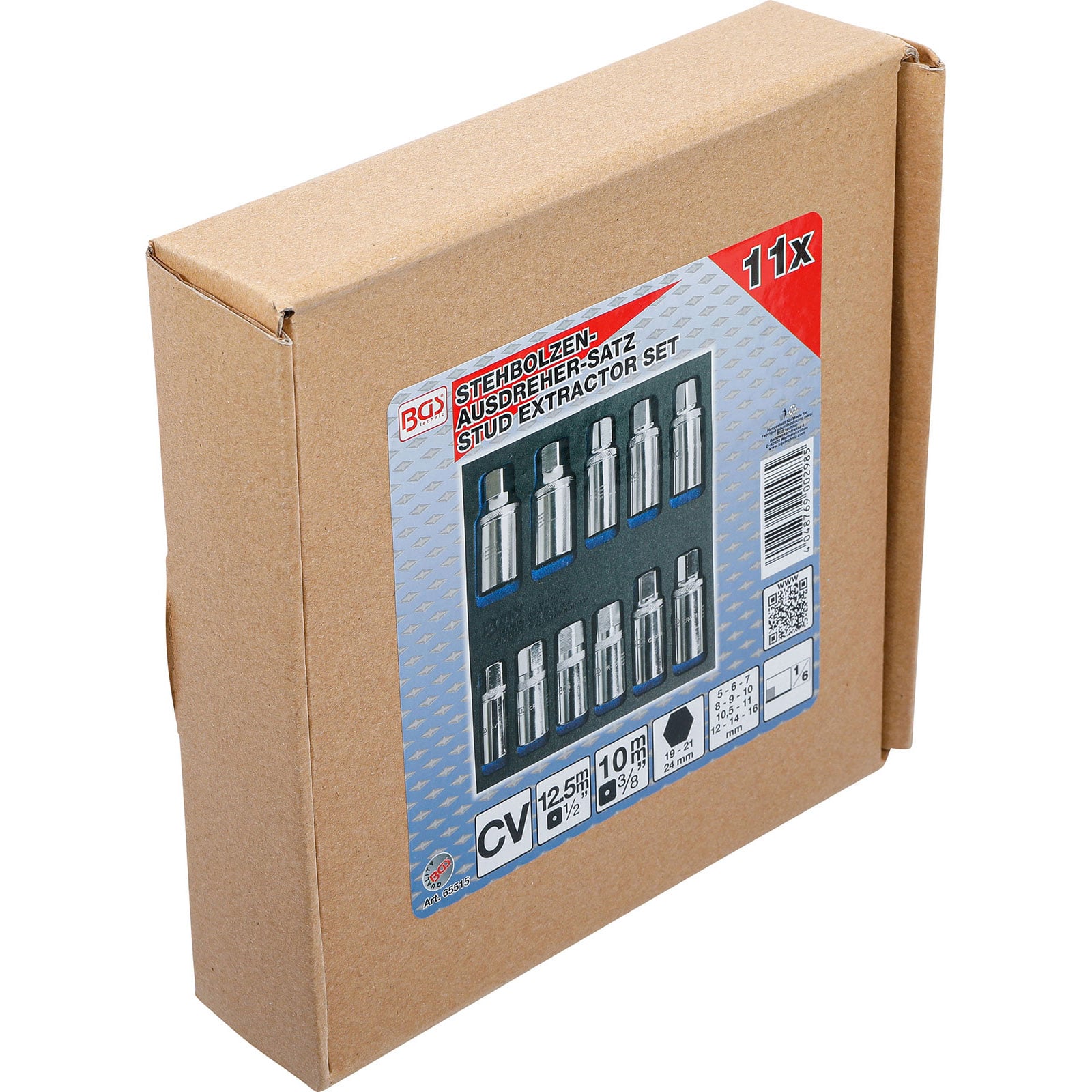 "BGS Werkstattwageneinlage 1/6: Stehbolzen-Ausdreher-Satz 5 - 16 mm 11tlg. - 65515"