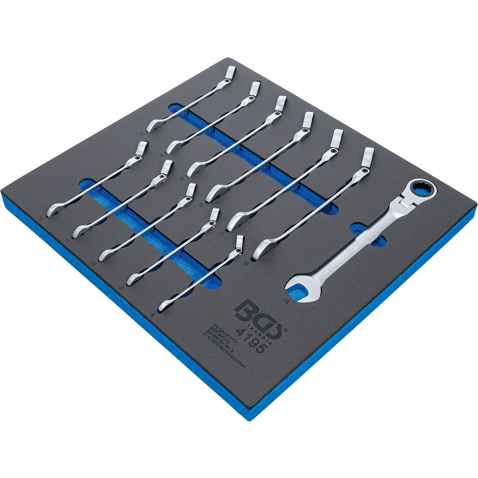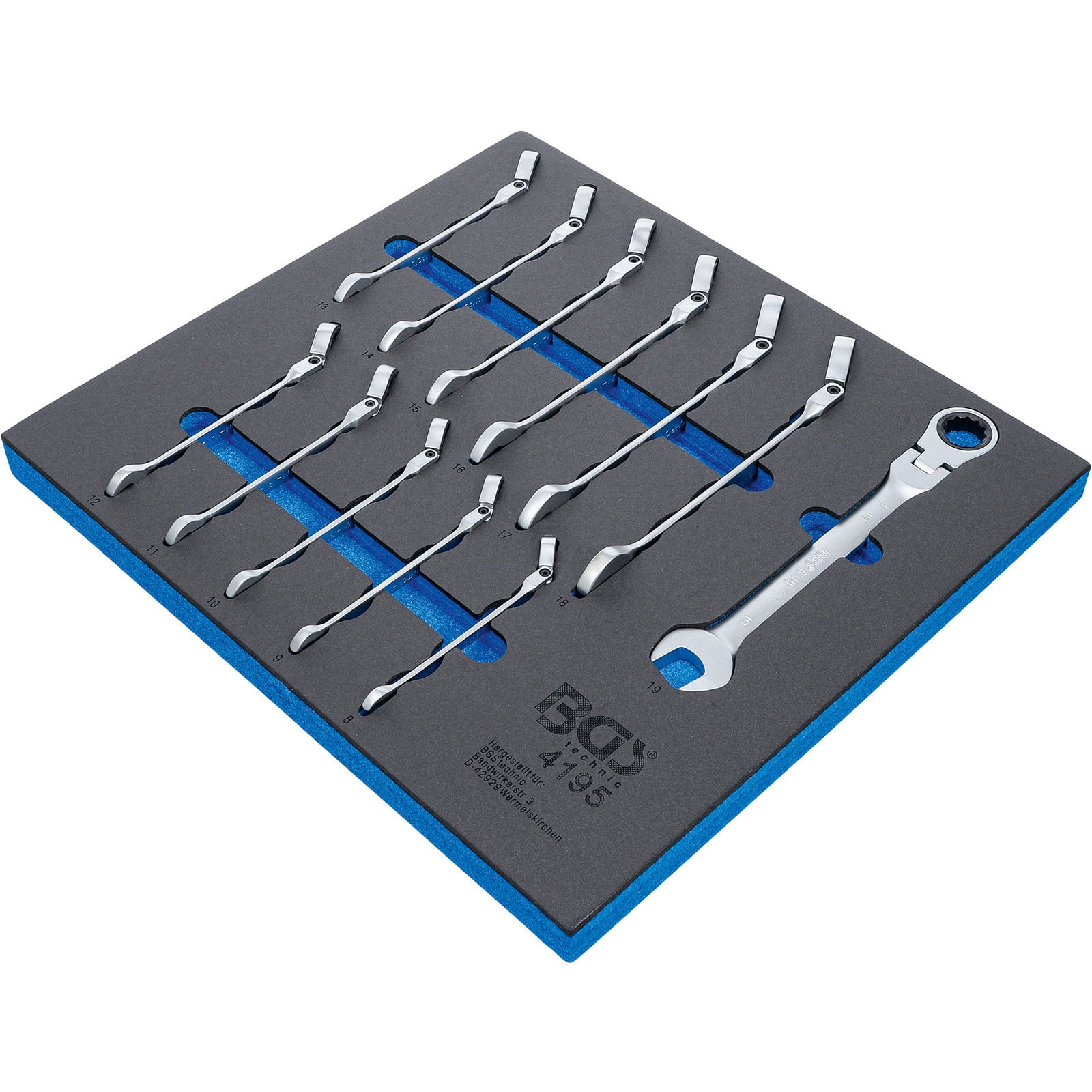 "BGS Werkstattwageneinlage 2/3: Ratschenring-Maulschlüssel-Satz abwinkelbar SW 8 - 19 mm 12tlg. - 4195"