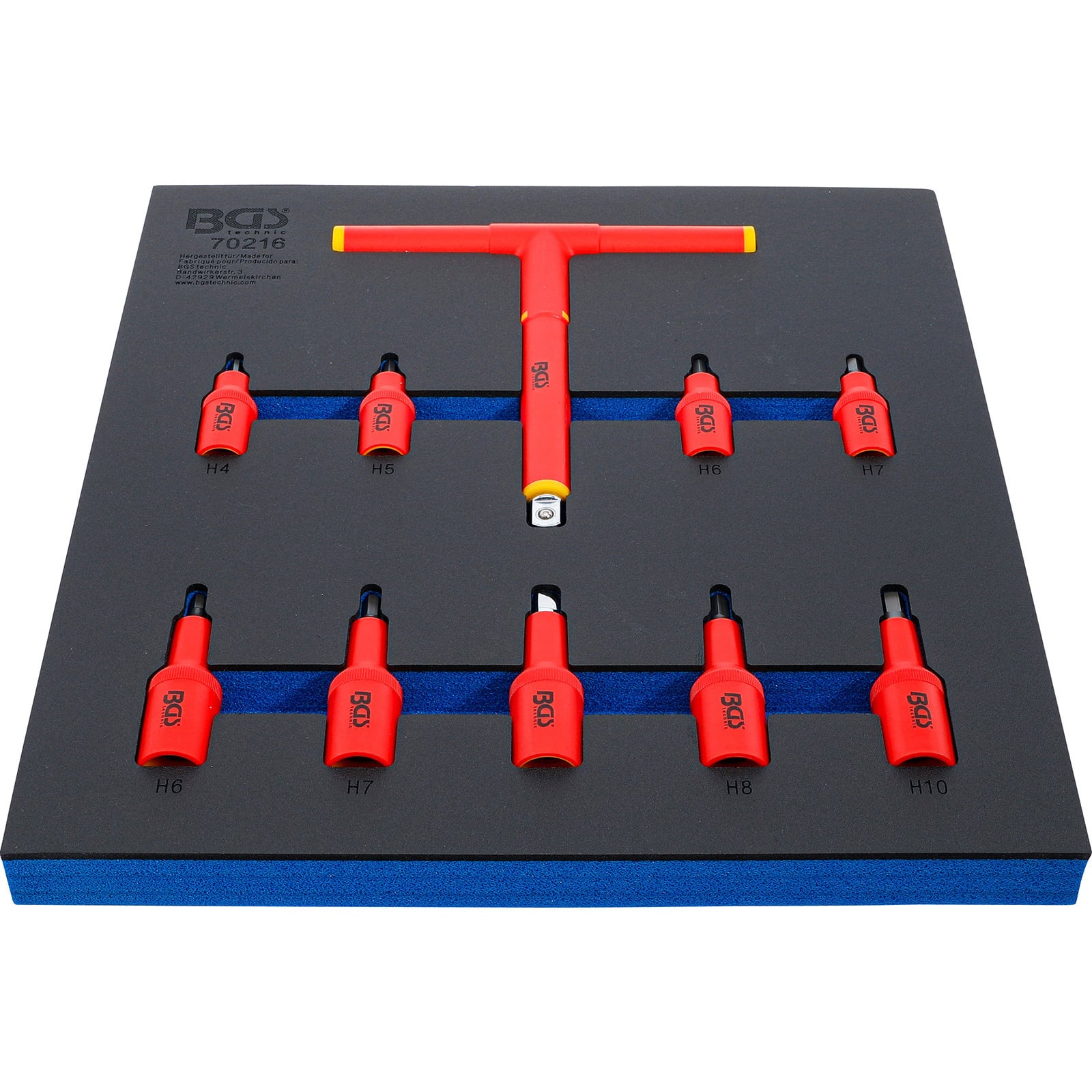 "BGS Werkstattwageneinlage 2/3: VDE-Bit-Einsatz-Satz Antrieb Innenvierkant 10 mm (3/8") / 12,5 mm (1/2") Innensechskant 4 - 10 mm 10tlg. - 70216"