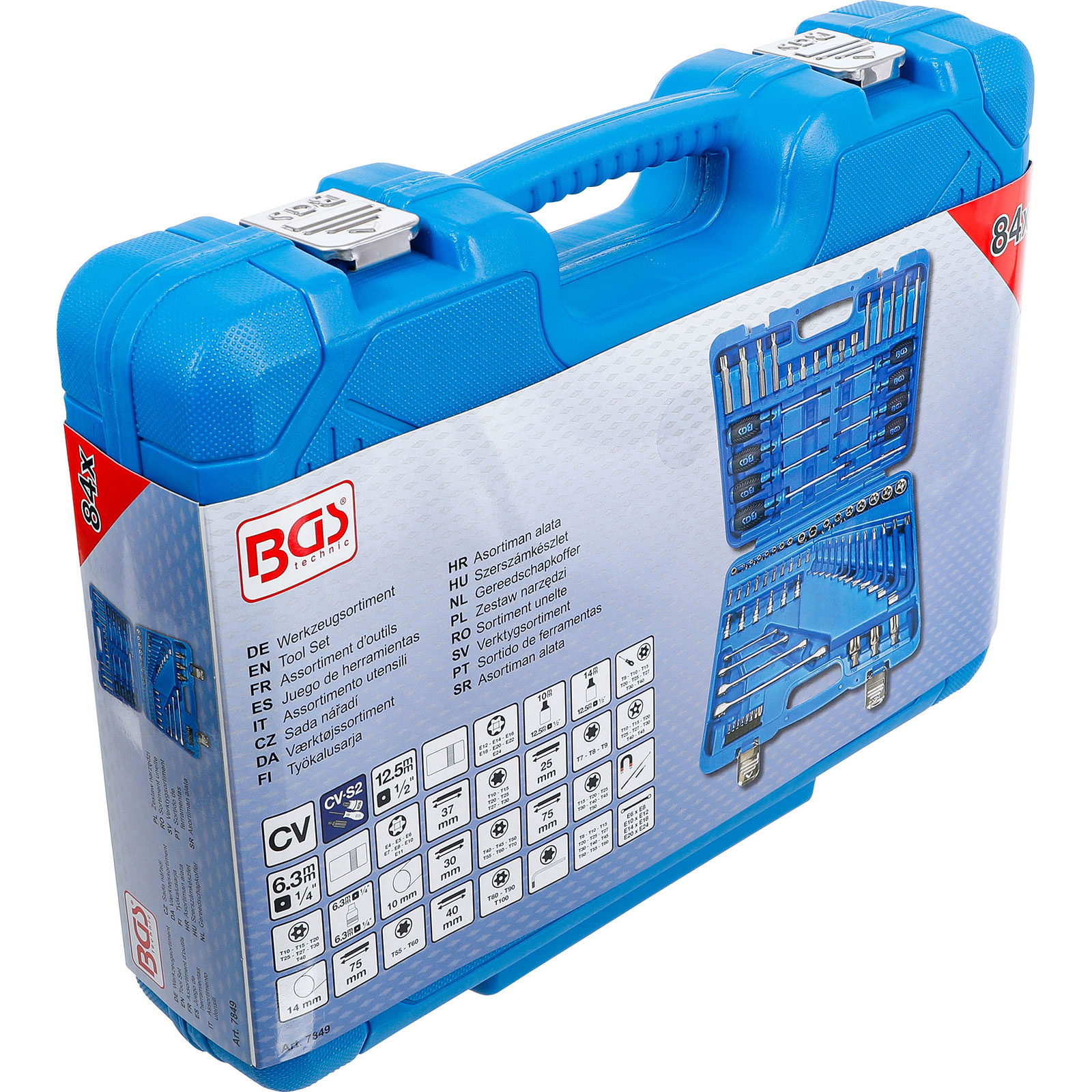 "BGS Werkzeugsortiment 6,3 mm (1/4") + 12,5 mm (1/2") E-Profil / T-Profil (für Torx) 84tlg. - 7849"