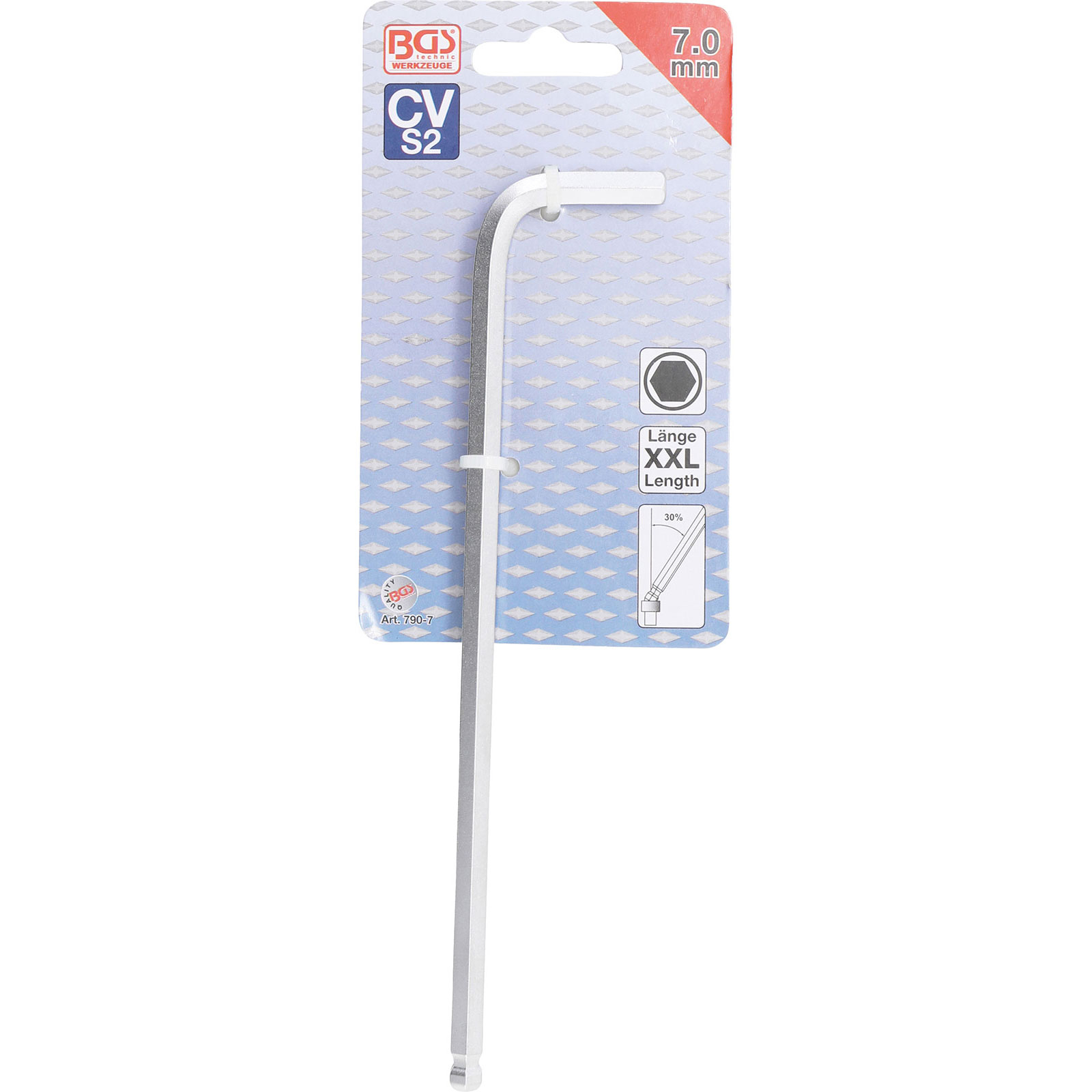 "BGS Winkelschlüssel extra lang Innensechskant/Innensechskant mit Kugelkopf 7 mm - 790-7"