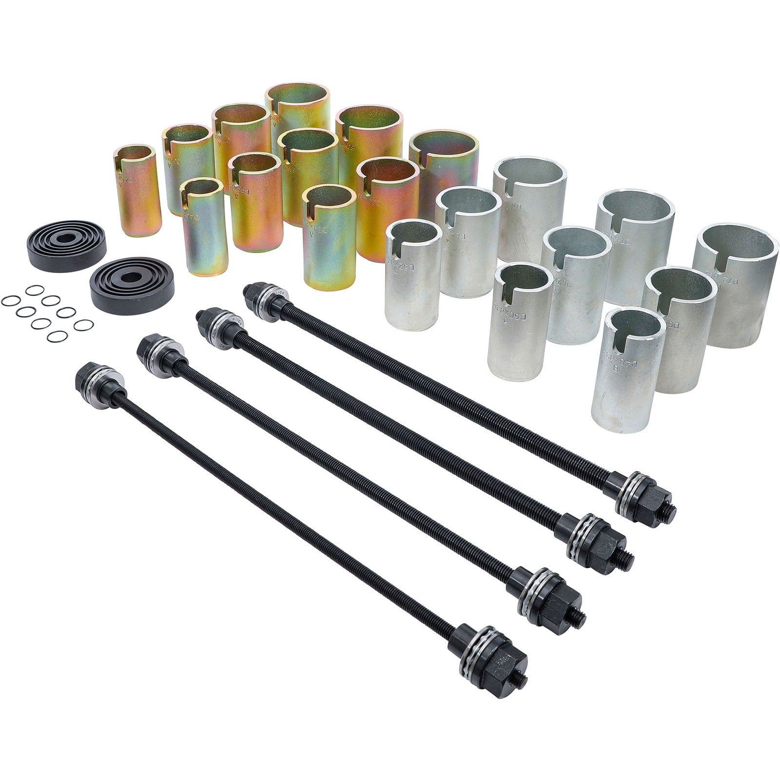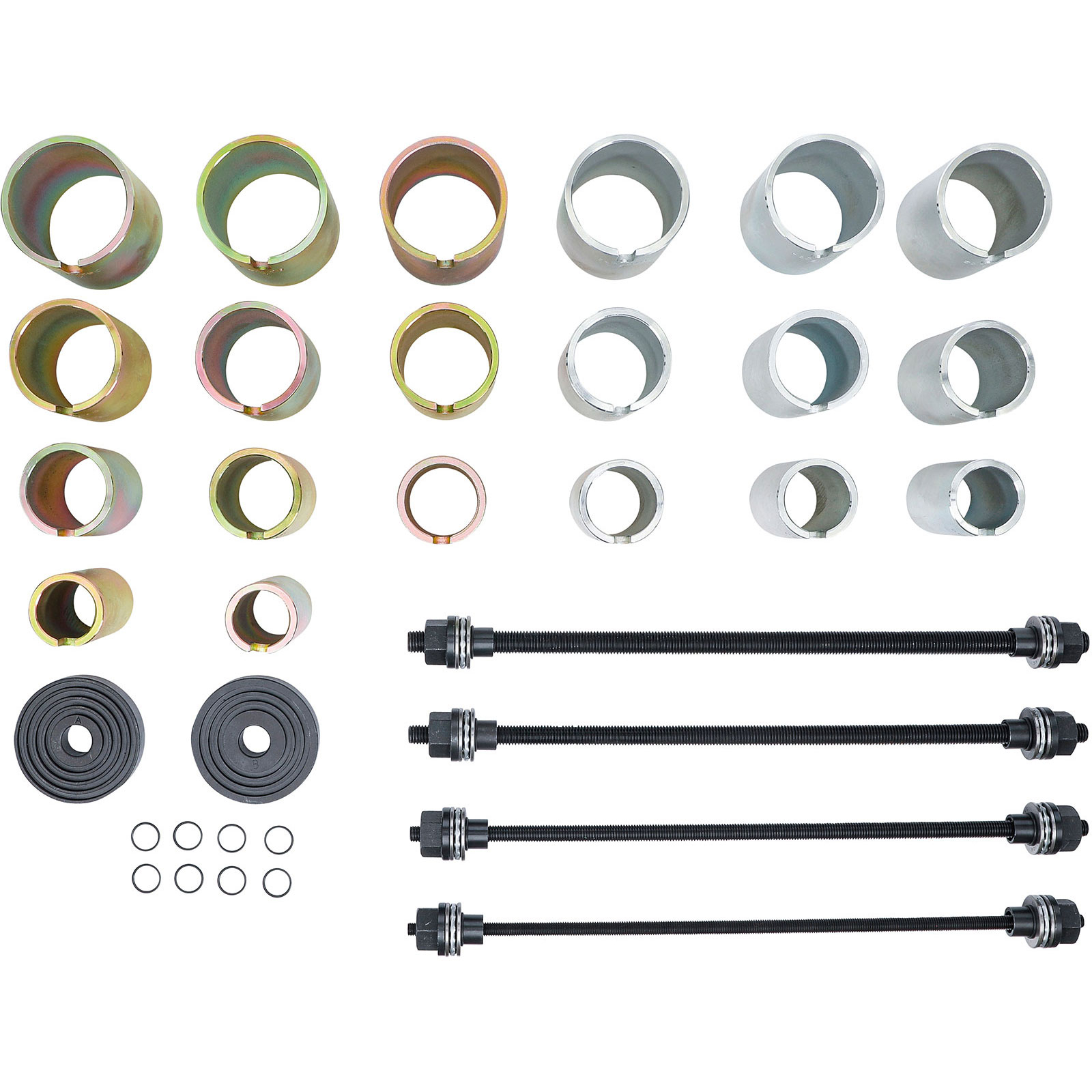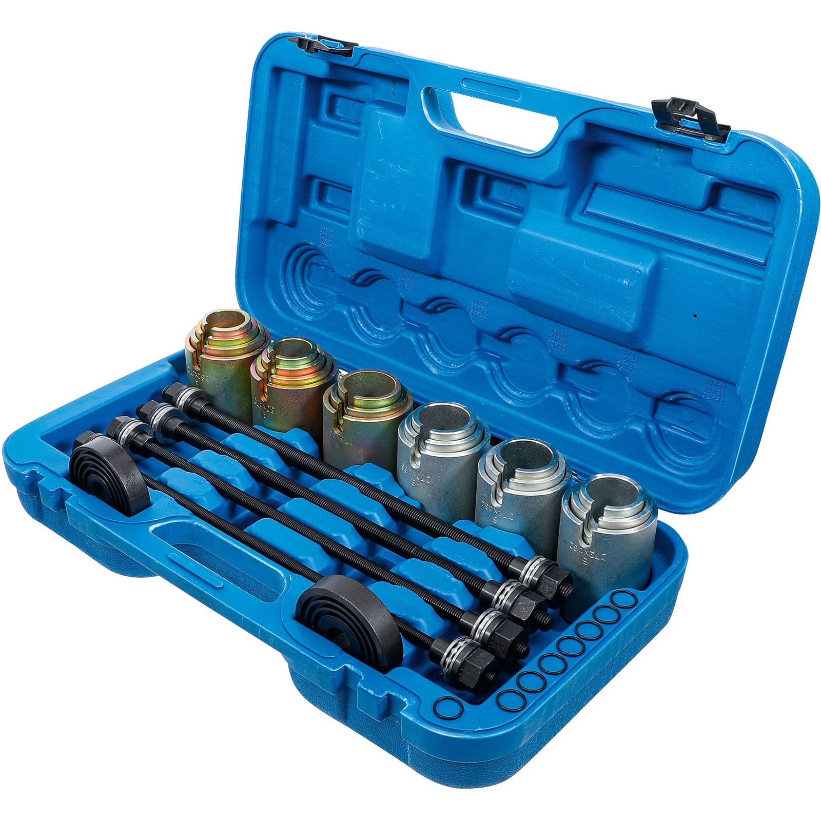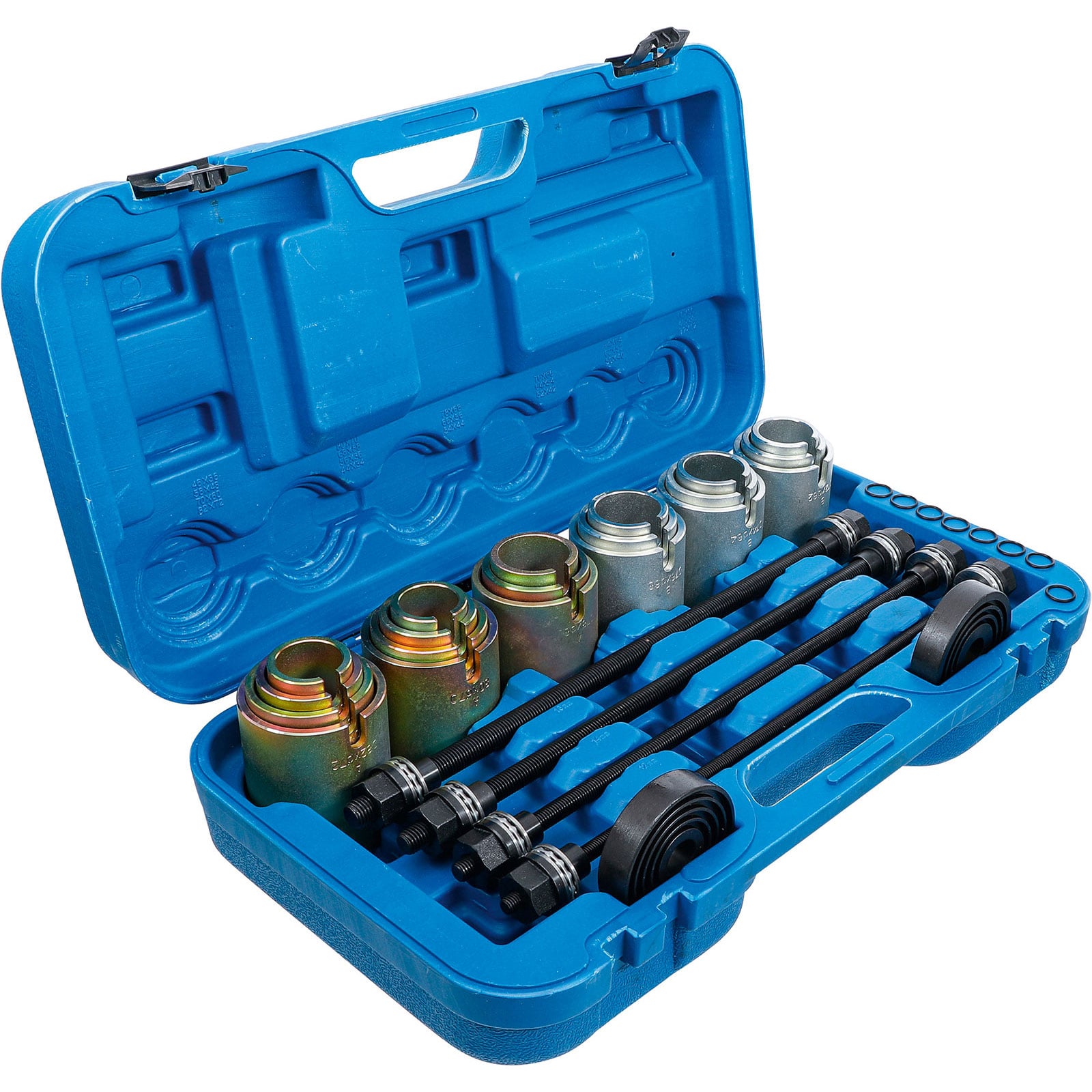 - umfangreicher Satz für schnelle und effektive Demontage und Montage von Radlagern und Fahrwerksbuchsen