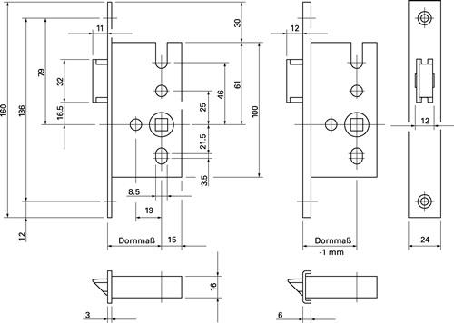- 1x BKS Einsteck-Fallenschloss 20/55/8mm DIN L/R silberf.ktg