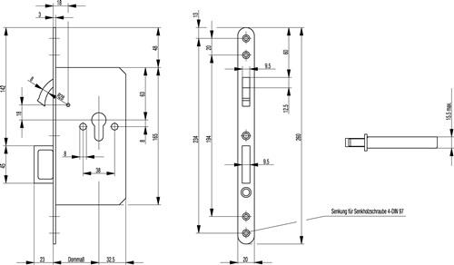 - Einsteck-Gegenkasten für Schiebetürschloss 0353