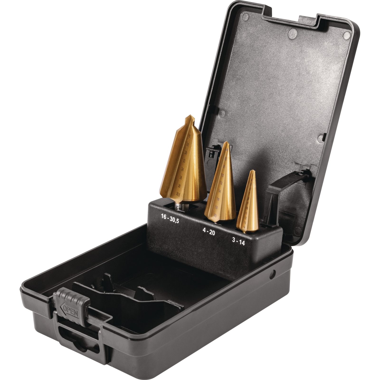 "Blechschälbohrersatz 3-14/4-20/16-30,5mm HSS-TiN 3tlg.Ku.-Kass.TECWERK"