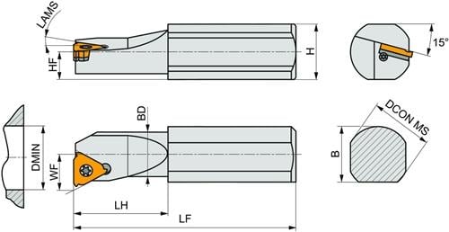 Schraubgeklemmte Gewindebohrstange mit 1.5° Helixwinkel zum spannen einer dreieckigen Wendeschneidplatte mit einem Innenkreisdurchmesser von 9.525mm (Bezeichnung TN 16NL.. ) · linke Standardausführung mit Zylinderschaft aus Stahl ohne Kühlmittelbohrung · 20mm Durchmesser 170mm Gesamtlänge zum Innengewinden · einstechen von Sicherungsringen · und einstechen von O-Ringen Weitere technische Eigenschaften: · Ø D min: 24mm · Bruttogewicht: 407,9g · Fräserdesign: SI(RL) · Funktionsbreite - Metrisch: 13,85mm · Funktionshöhe - Metrisch: 9mm · Funktionslänge - Metrisch: 170mm · Grundkörperdurchmesser - Metrisch: 21mm · Klemmtypcode: S - Schraubklemmung durch Bohrung · Nettogewicht: 407,9g · Schaftbreite - Metrisch: 18,5mm · Schafthöhe - Metrisch: 18mm · Schneidrichtung: Links · Spanndurchmesser - Metrisch: 20mm