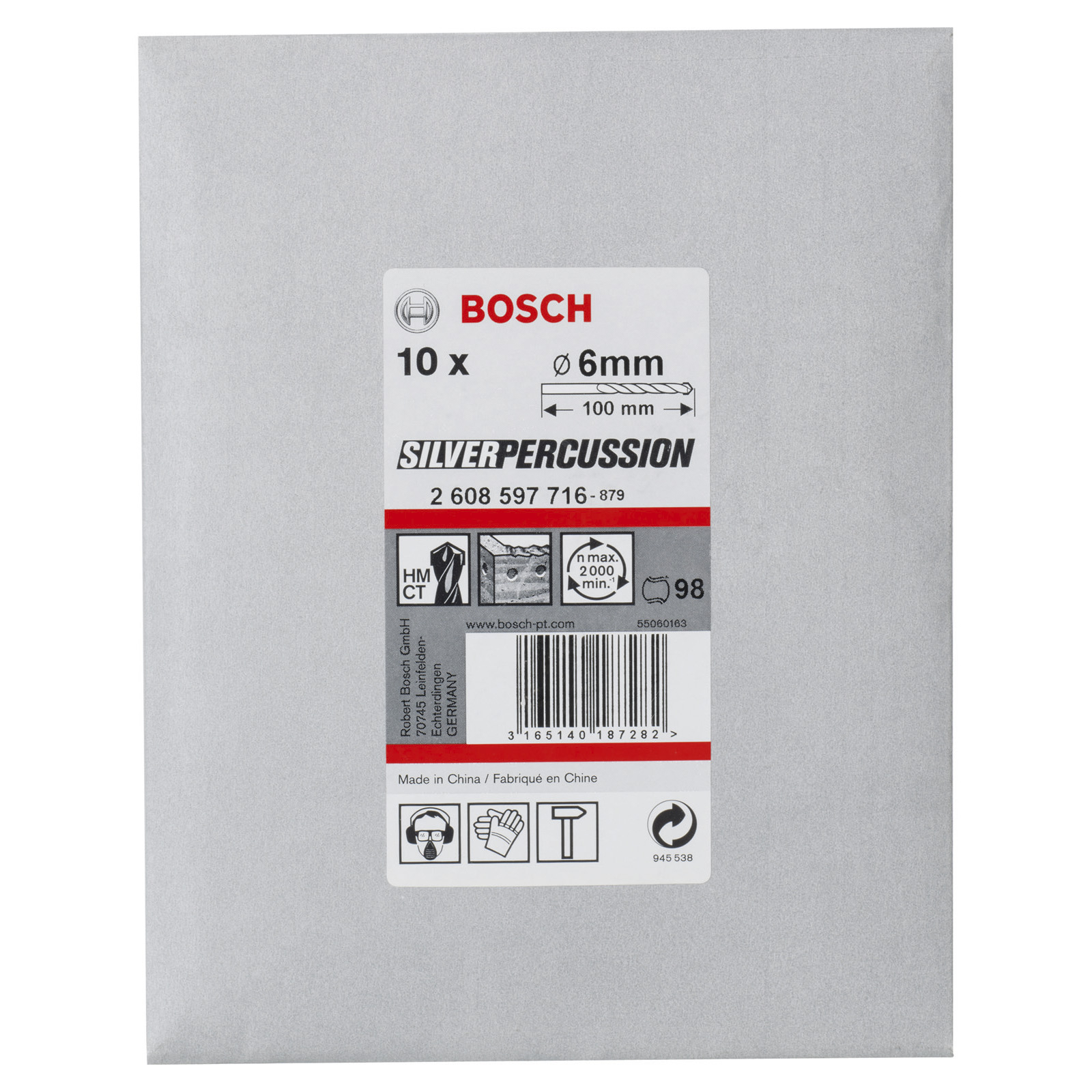 - 10x Bosch Betonbohrer CYL-3, Silver Percussion, 6 x 60 x 100 mm, d 5,5 mm - 2608597716