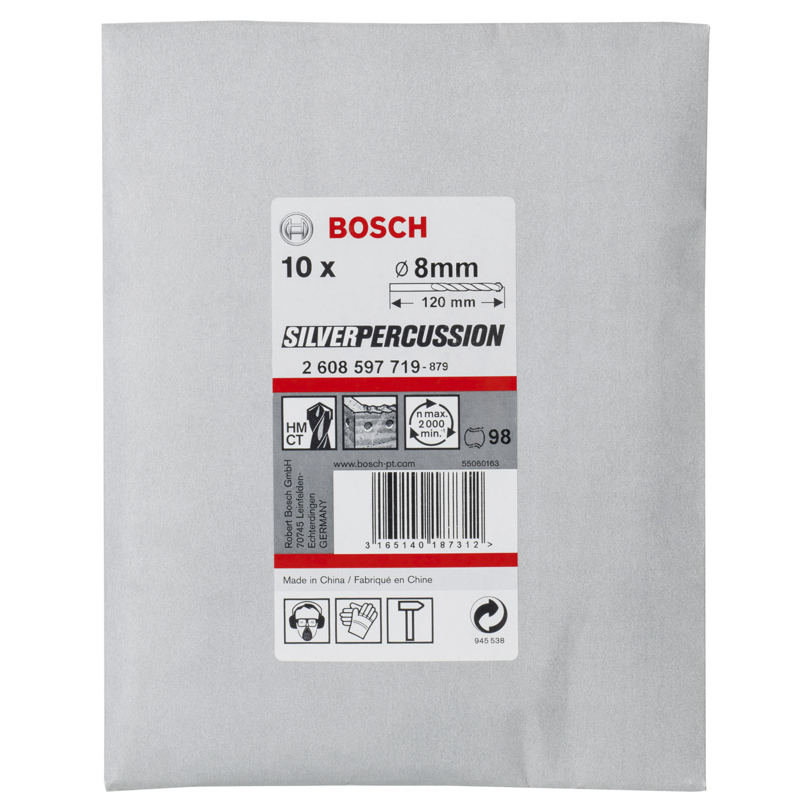 - 10x Bosch Betonbohrer CYL-3, Silver Percussion, 8 x 80 x 120 mm, d 7,5 mm -2608597719