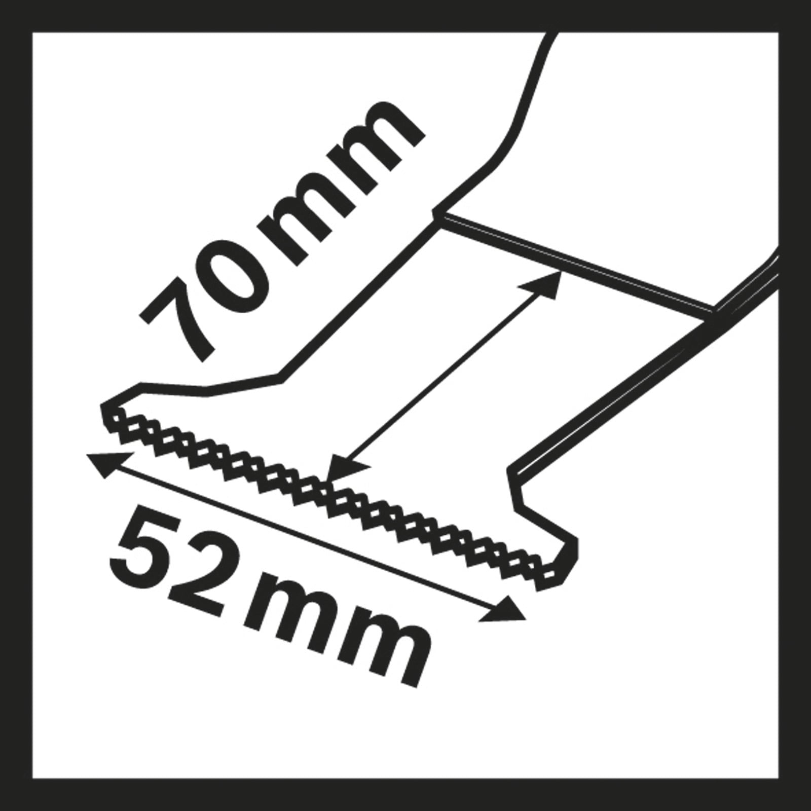 - Seine Breite von 52 mm und Länge von 70 mm erhöhen die Reichweite für ausgedehnte Schnitte.