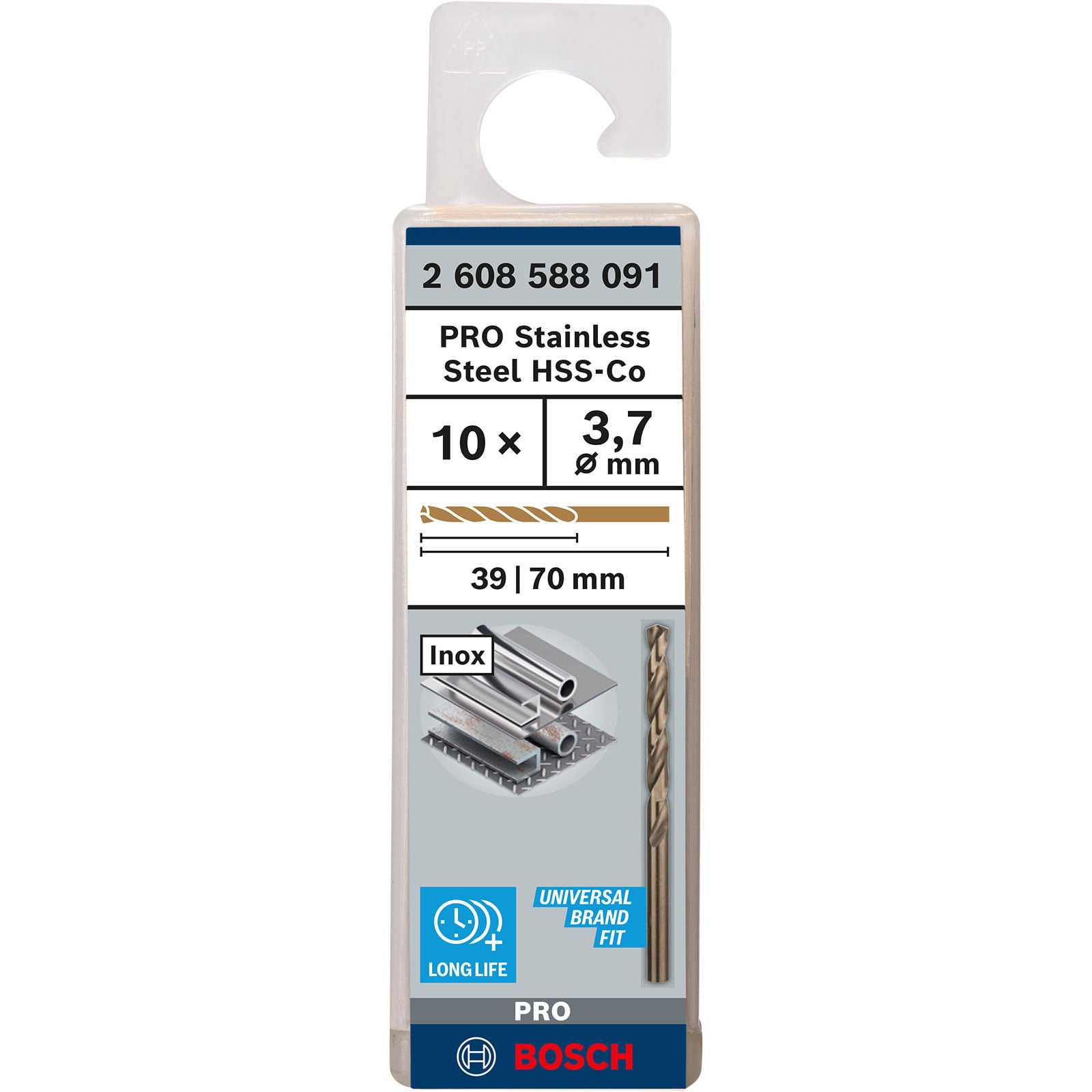 "Bosch PRO Stainless Steel HSS-Co Spiralbohrer 3,7 x 39 x 70 mm - 2608588091"