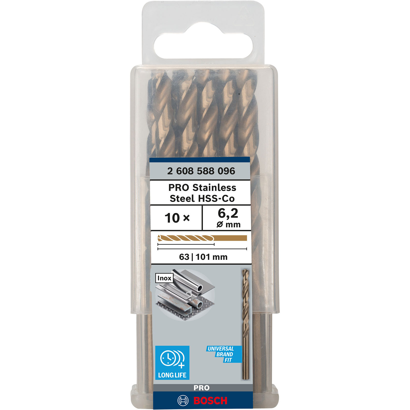"Bosch PRO Stainless Steel HSS-Co Spiralbohrer 6,2 x 63 x 101 mm - 2608588096"