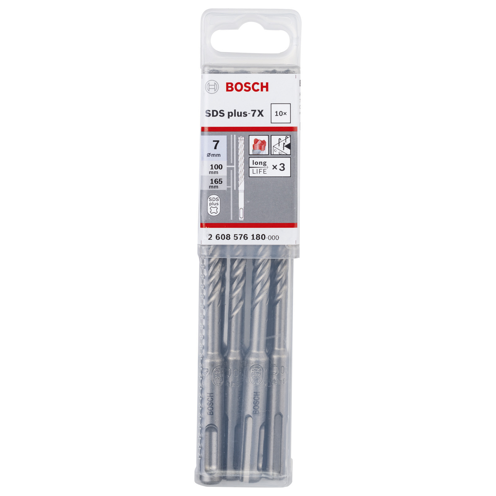 "Bosch 10x Hammerbohrer SDS-plus-7X 7 x 100 x 165 mm - 2608576180"