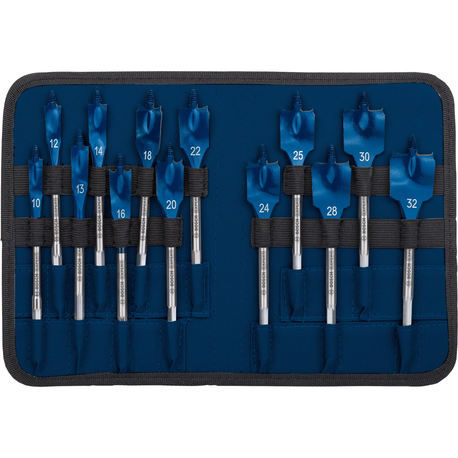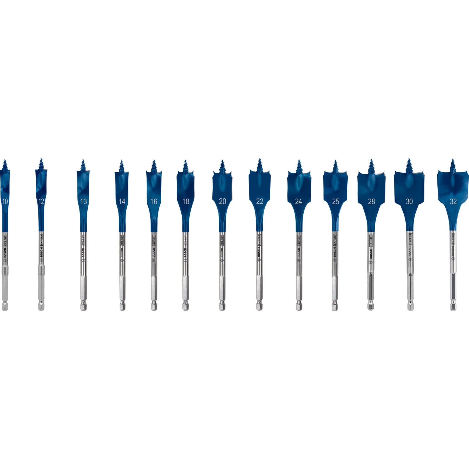- 1x Bosch Expert SelfCut Speed Flachfräsbohrer-Set 10/12/13/14/16/18/20/22/24/25/28/30/32 mm 13tlg.