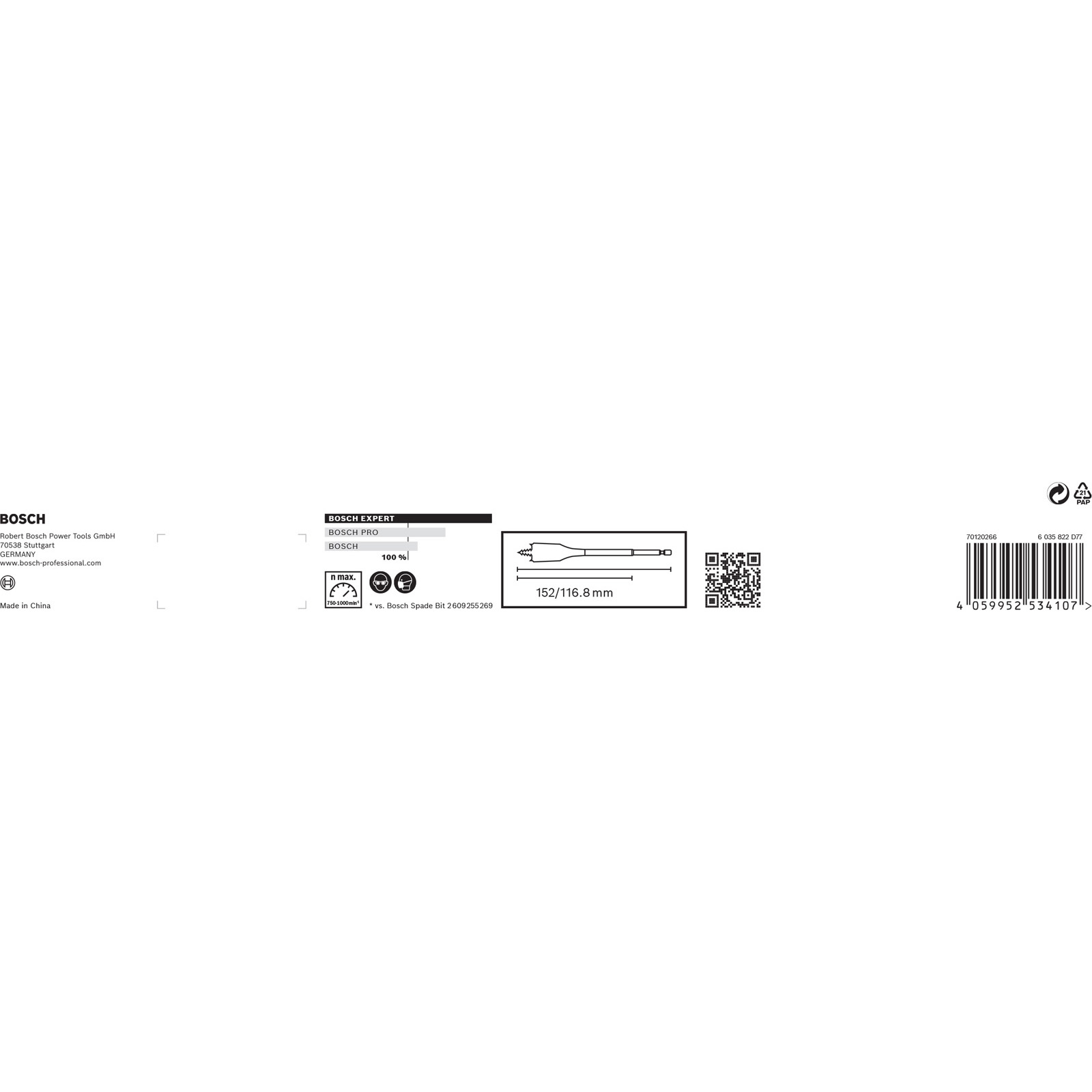 Der Expert SelfCut Speed bietet die fortschrittlichsten Designs für Flachfräsbohrer. Dadurch ist er einfach zu bedienen und für professionelle Benutzer äußerst praktisch. Die von Bosch patentierte Gewindespitze zieht den Flachfräsbohrer bereits mit dem geringsten Druck durch den Benutzer in das Holz. Dies ist besonders hilfreich, wenn du über Kopf oder in engen Nischen bohren musst. Das fortschrittliche Paddeldesign sorgt für zusätzliche Geschwindigkeit.