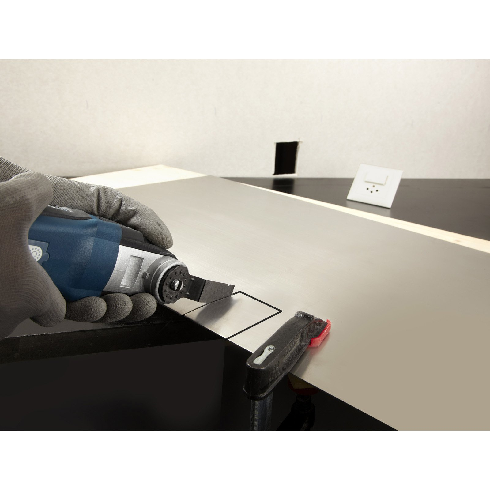 - Das Blatt zerschneidet Metalle, Gipskartonplatten, Zementfaserplatten und faserverstärkte Kunststoffe.