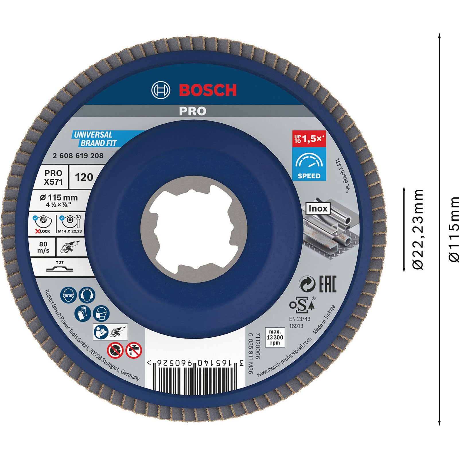 "Bosch PRO X571 X-Lock Fächerschleifscheibe 115 mm G120 - 2608619208"