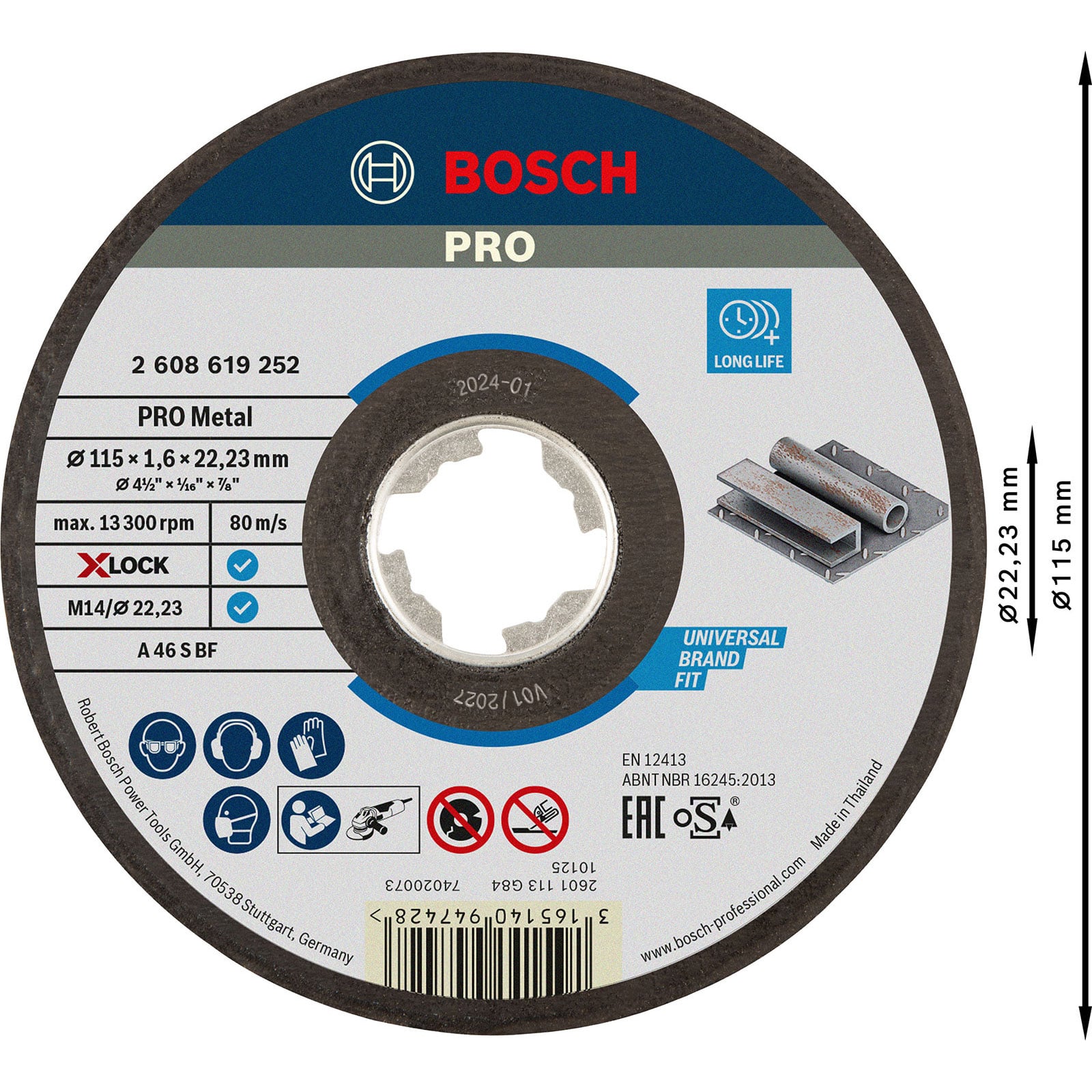 "Bosch PRO Metal X-Lock Trennscheibe 115 x 1,6 x 22,23 mm - 2608619252"