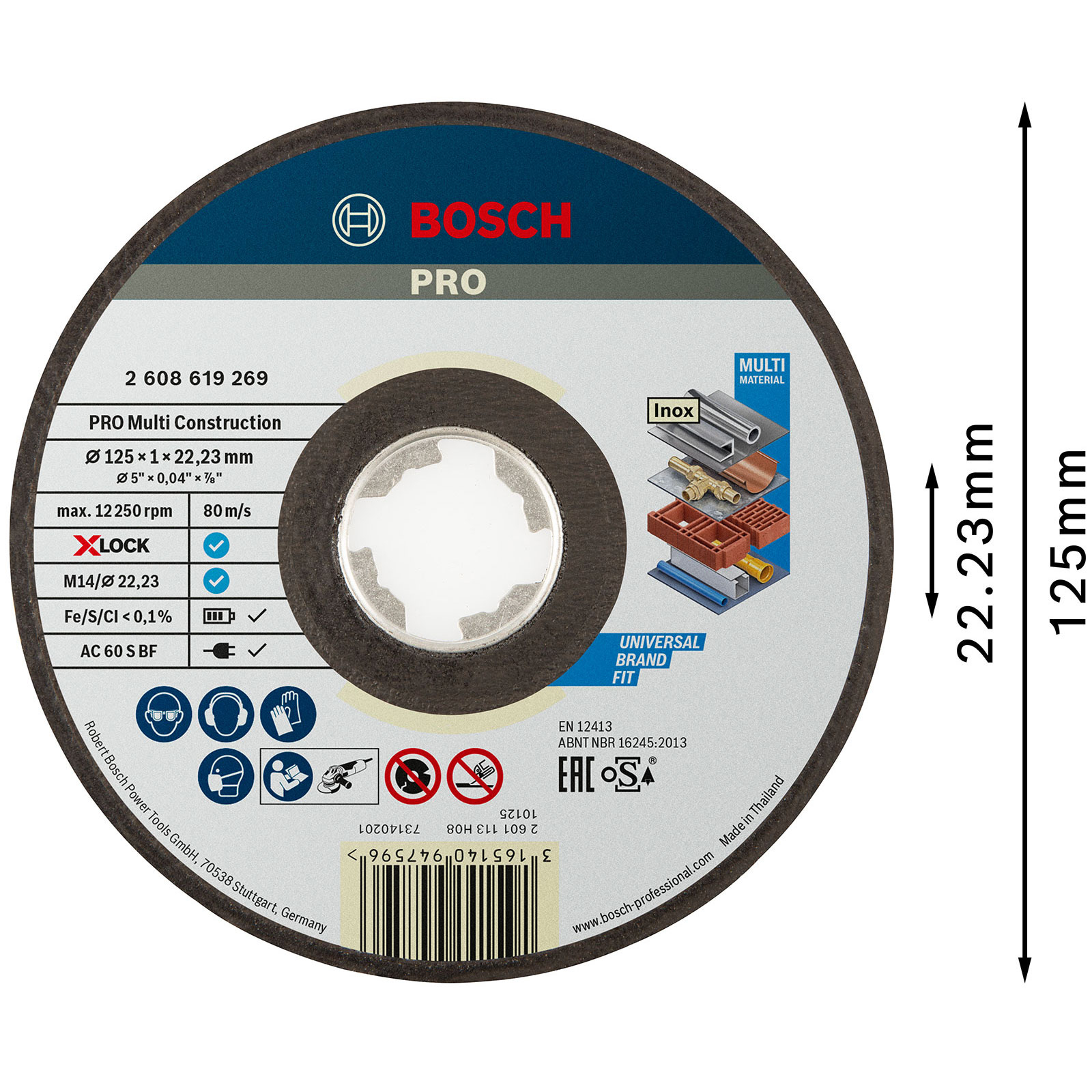 - 1x Bosch PRO Multi Material X-Lock Trennscheibe 125 x 1 x 22,23 mm