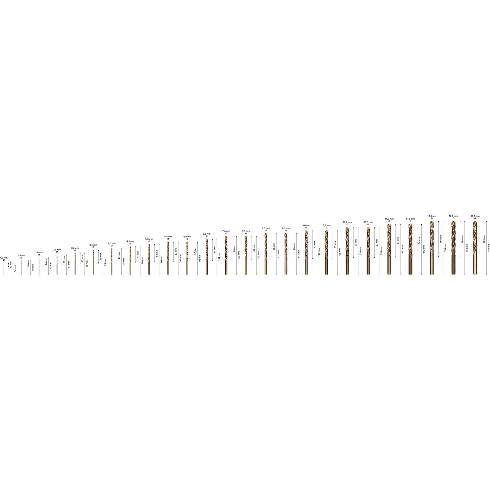 Der HSS-Co Spiralbohrer hat beim Bohren von rostfreiem Stahl eine lange Lebensdauer. Für diese verlängerte Lebensdauer sorgen die Metalllegierung mit 5 % Cobaltgehalt und der aus dem Vollen geschliffene HSS-Stahl mit ausgezeichneter Oberflächengüte, Verschleißfestigkeit und Hitzeschutz. Die zwei Schneidekanten und zwei Spiralnuten entfernen das Spangut schnell und verlängern damit zusätzlich die Lebensdauer. Dieser Bohrer bohrt legierten und unlegierten Stahl, rostfreien Stahl, Gusseisen, Gussstahl sowie säure- und hitzebeständigen Stahl. Der HSS-Co Spiralbohrer wird nach DIN 338 gefertigt. Er gehört zum Bohrertyp N (kleiner Seitenspanwinkel) mit Bohrspitze 135 Grad und Durchmessertoleranz h8. Die Bohrspitze mit Kreuzanschliff ermöglicht aktiven Bohransatz und perfektes Zentrieren ohne Wandern. Dieser Bohrer bohrt legierten und unlegierten Stahl, rostfreien Stahl, Gusseisen, Gussstahl sowie säure- und hitzebeständigen Stahl. Der Schaft ist zylindrisch (der Schaftdurchmesser entspricht dem Bohrerdurchmesser). Er wird mit Bohrständern und Bohrschraubern verwendet.