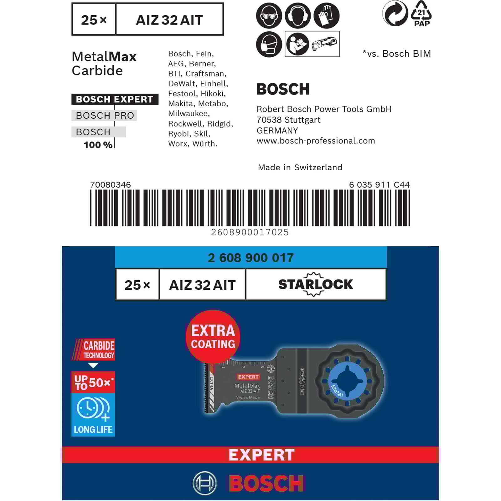"Bosch 25x Expert MetalMax Starlock AIZ 32 AIT Tauchsägeblatt für Multifunktionswerkzeuge 40 x 32 mm - 2608900017"
