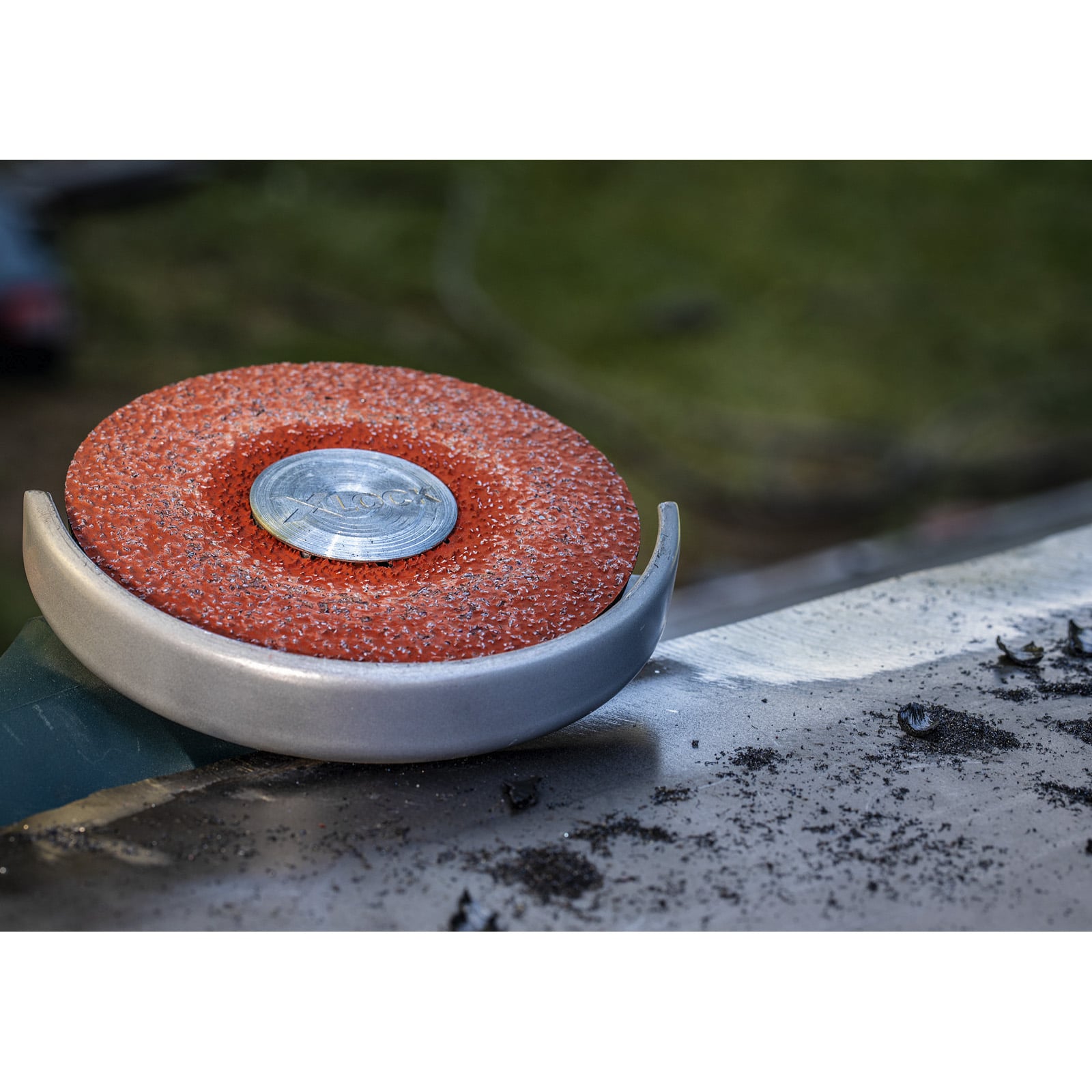 - Ideal zum Schleifen von Metall, z. B. zum Entfernen dicker Schweißnähte von Metallkonstruktionen.