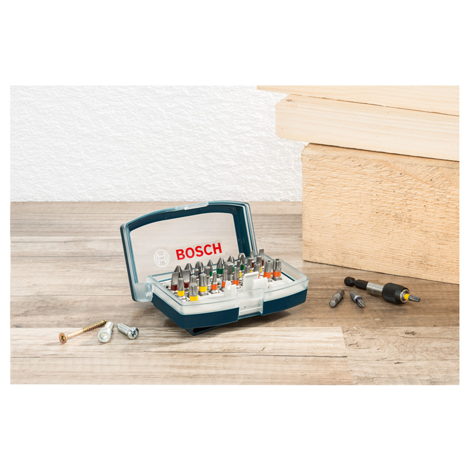 - 32-teiliges Bosch-Schrauberbit-Set mit Farbcodierung, blaue Version