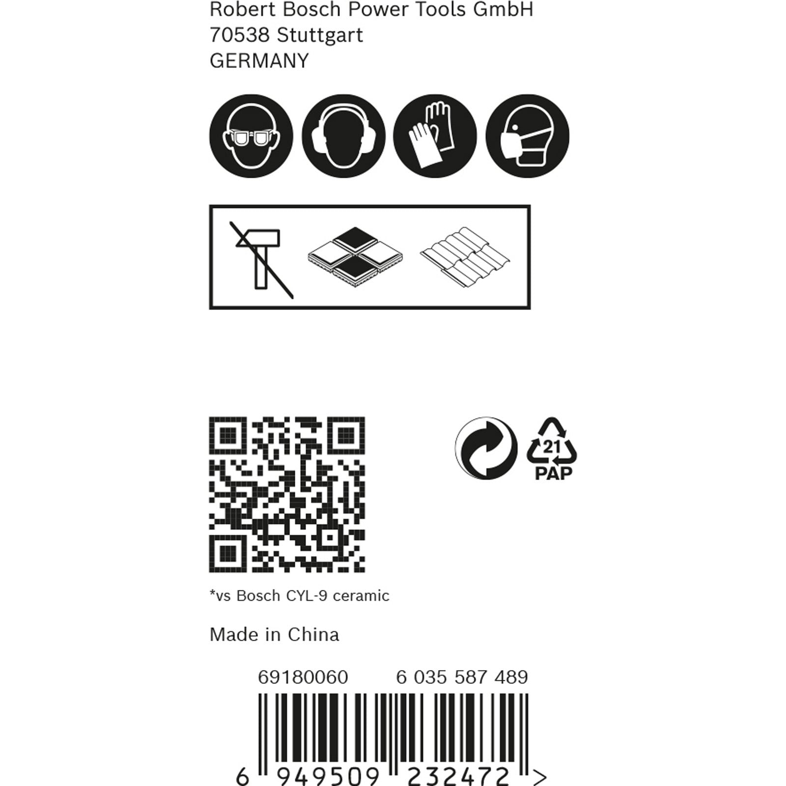 Für diesen speziellen Hartkeramikbohrer wird die Bosch’s Carbide Technology (Carbide-Technologie von Bosch) verwendet. Carbide ist das härteste aller Metalle. Kombiniert wird es mit einer fortschrittlichen, mehrschneidiger Spitze, die die Arbeitslast auf mehrere asymmetrische Flächen verteilt. Diese komplexe Bohrerspitze, die mit einem Feinschliff-Herstellungsverfahren gefertigt wird, ermöglicht auch ein präzises Anbohren ohne Wegrutschen und Verkratzen.