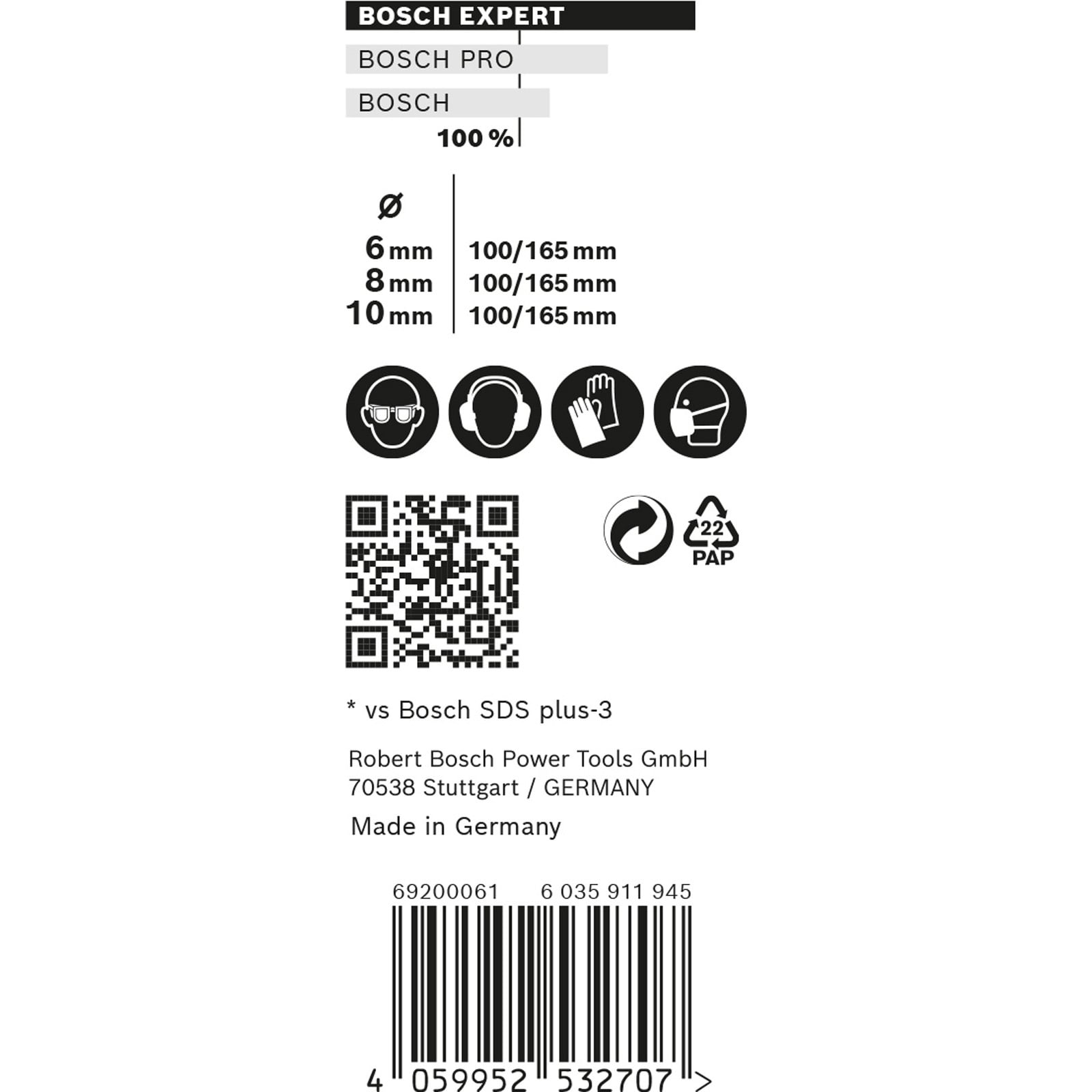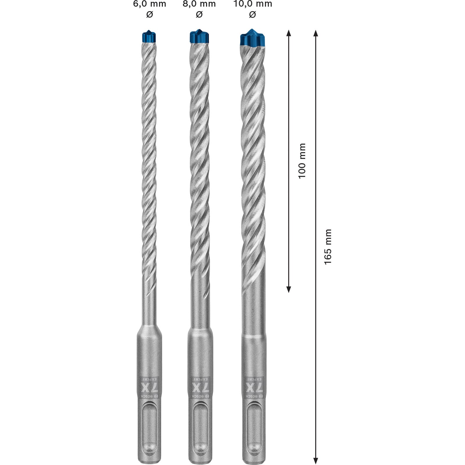 - je 1x Bosch Expert SDS plus-7X Hammerbohrer Länge 100 / 165 mm: 8 / 10 mm