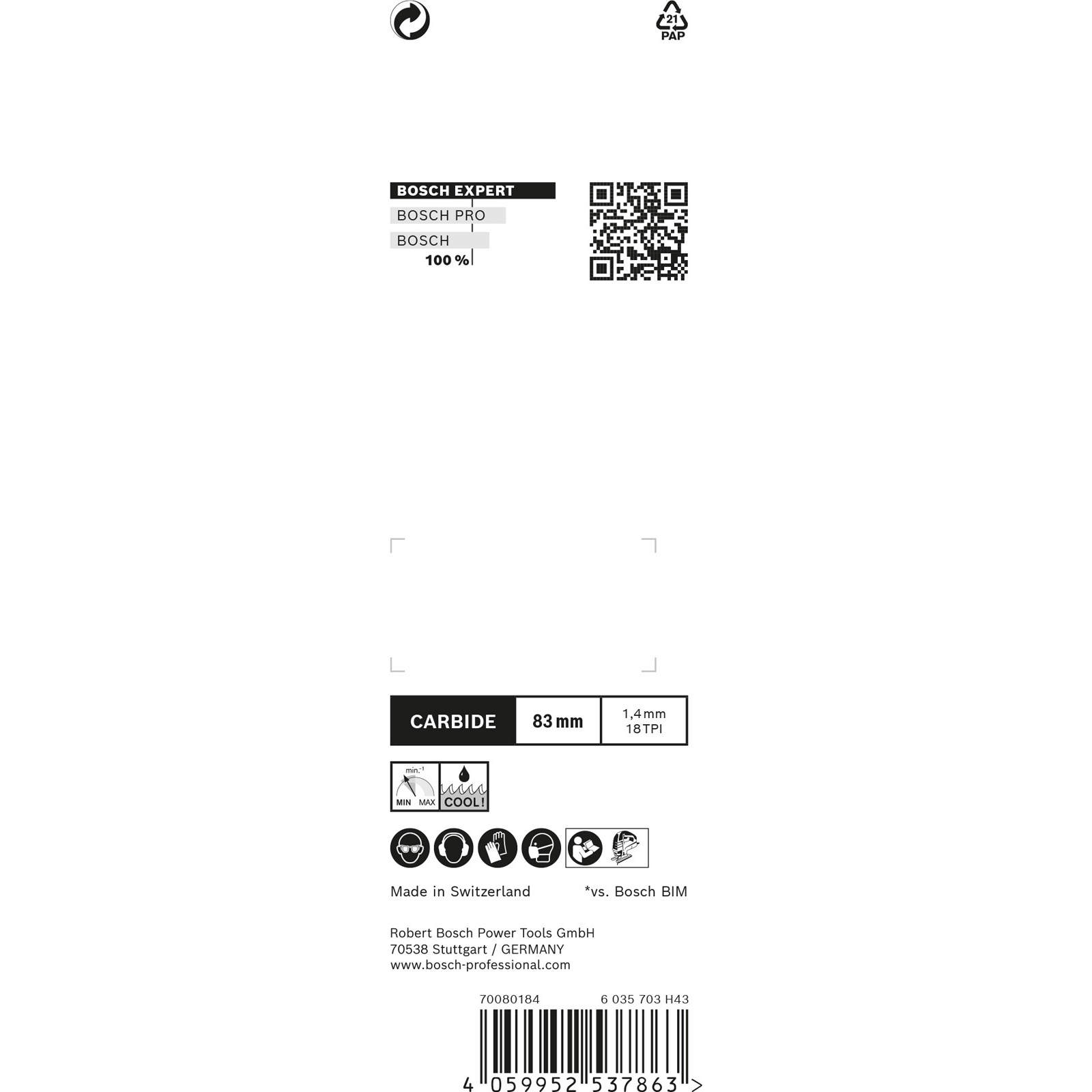 Das für die härtesten Metalle optimierte Expert ‘Stainless Steel’ hat eine Zahnteilung, die der Dicke der Bleche entspricht, mit denen du arbeitet. Die herausragende Lebensdauer dieses Blattes wird durch die Bosch Carbide Technology garantiert. Dabei wird eine Zahnleiste aus dem härtesten Metall auf den Körper lasergeschweißt. Es schneidet die härtesten Bleche äußerst effektiv und bietet die beste Lebensdauer.