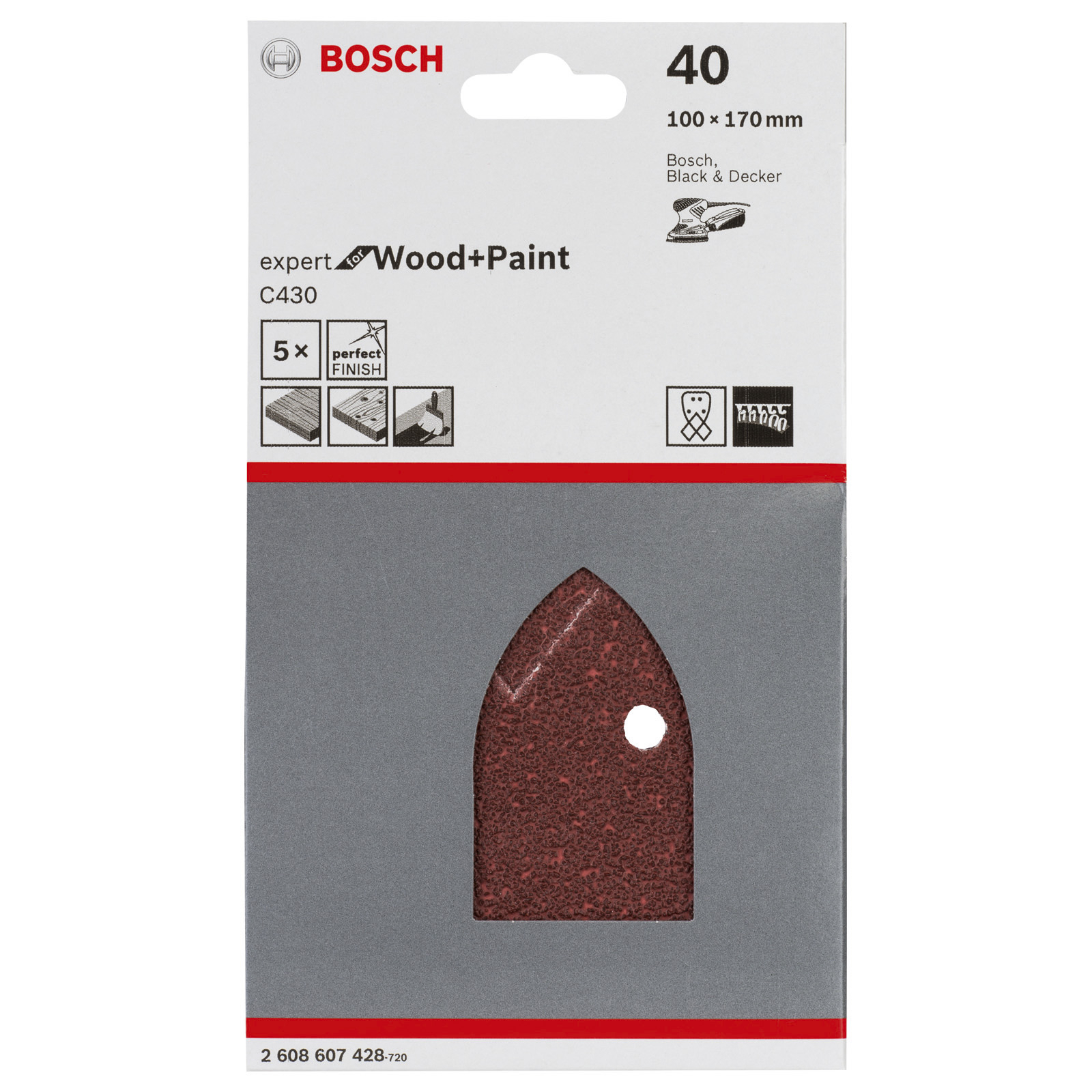 "Bosch 5x Schleifblatt C430 Expert for Wood 4 Löcher Klett 40 - 2608607428"
