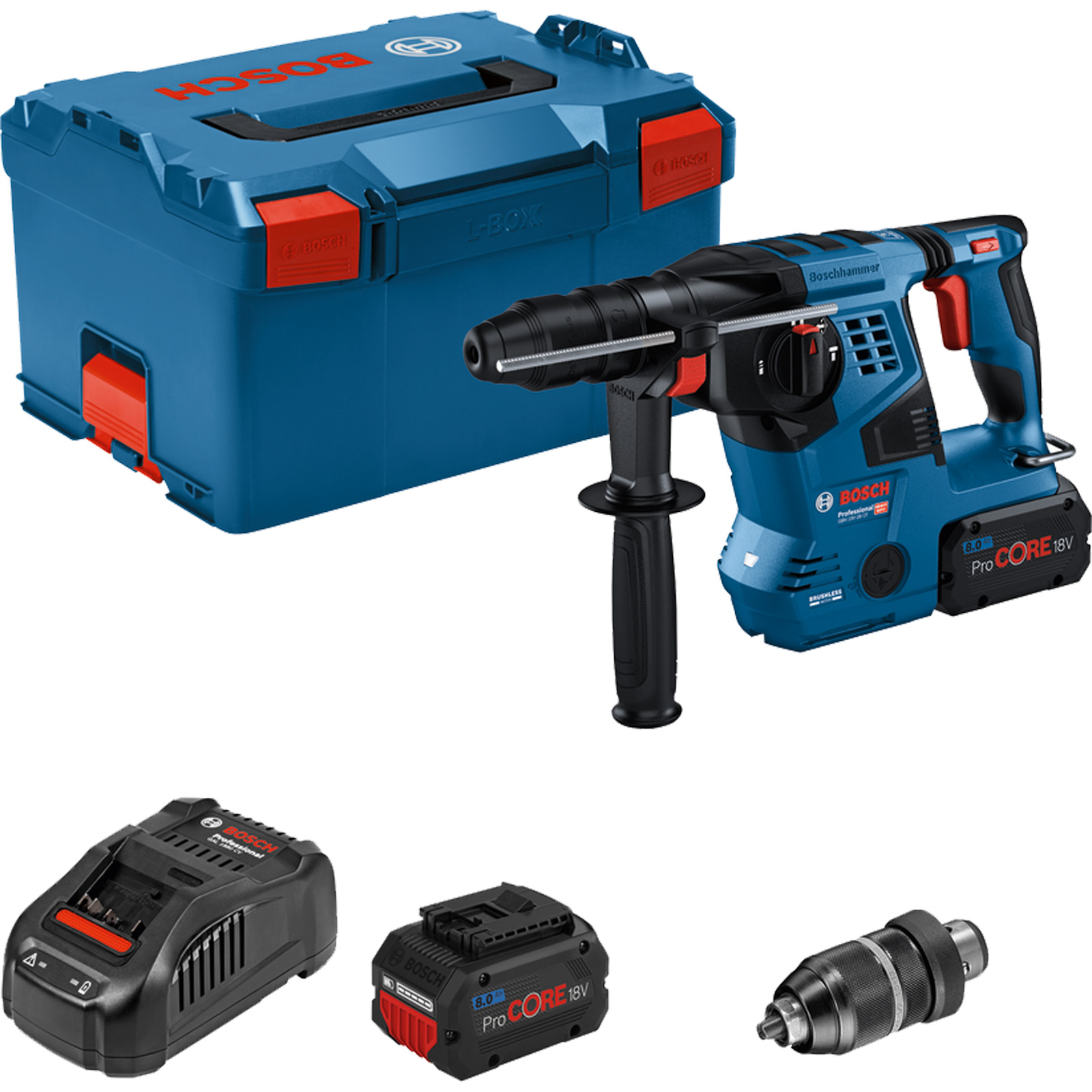 "Bosch Akku-Bohrhammer GBH 18V-28 CF mit SDS plus / 2x 8,0 Ah ProCORE18V Akku + Ladegerät in L-Boxx - 0611921002"