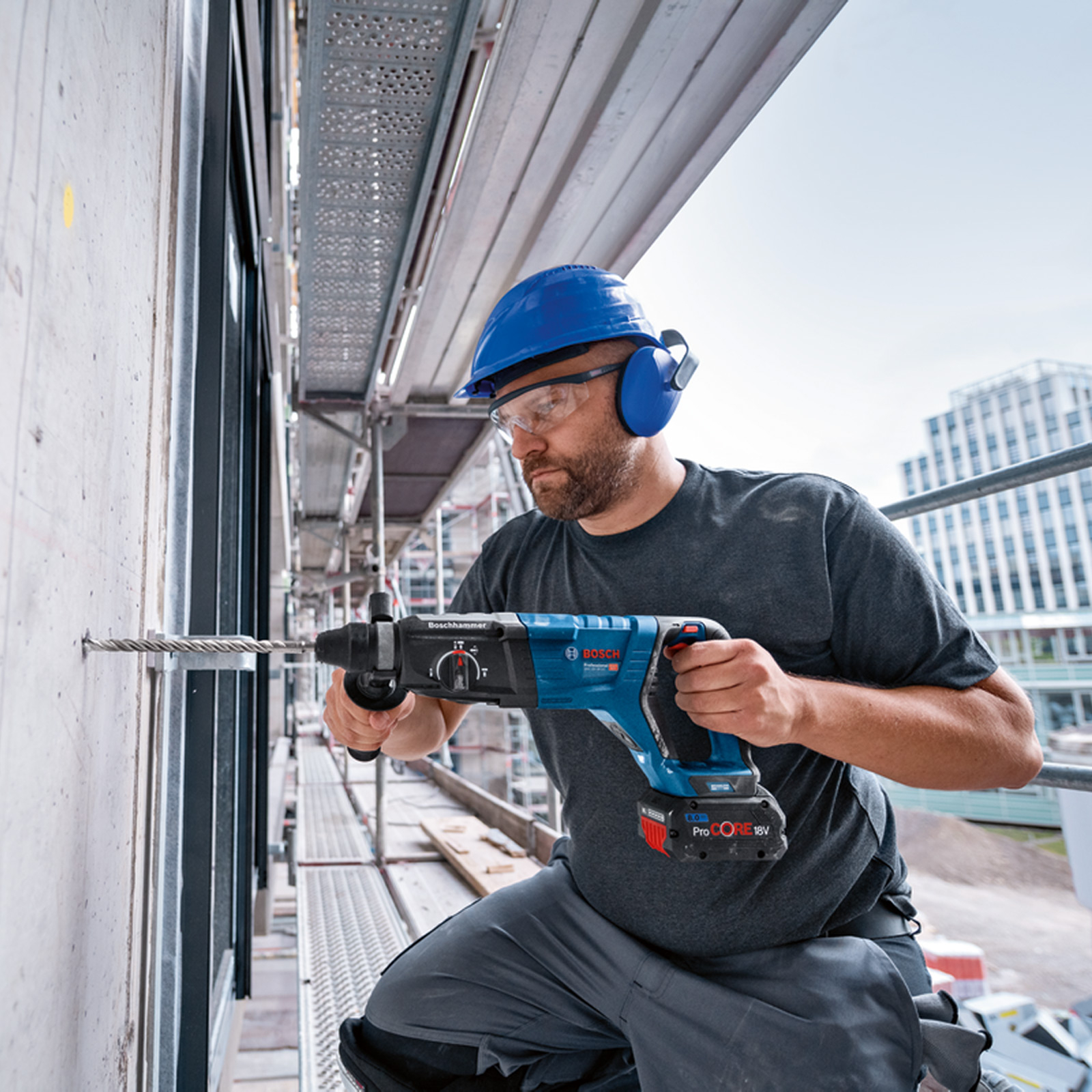 - Außergewöhnlich kraftvoll: 18V-D-Handgriff-Bohrhammer mit KickBack Control
