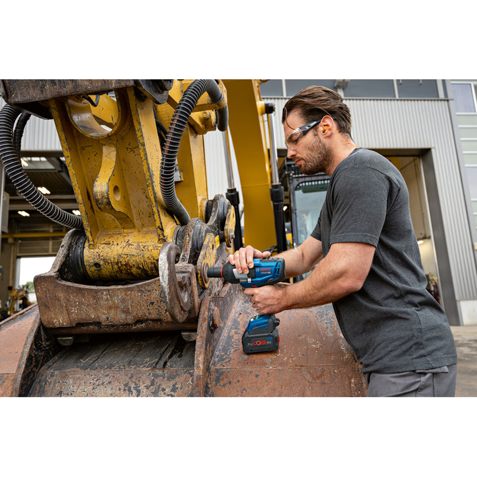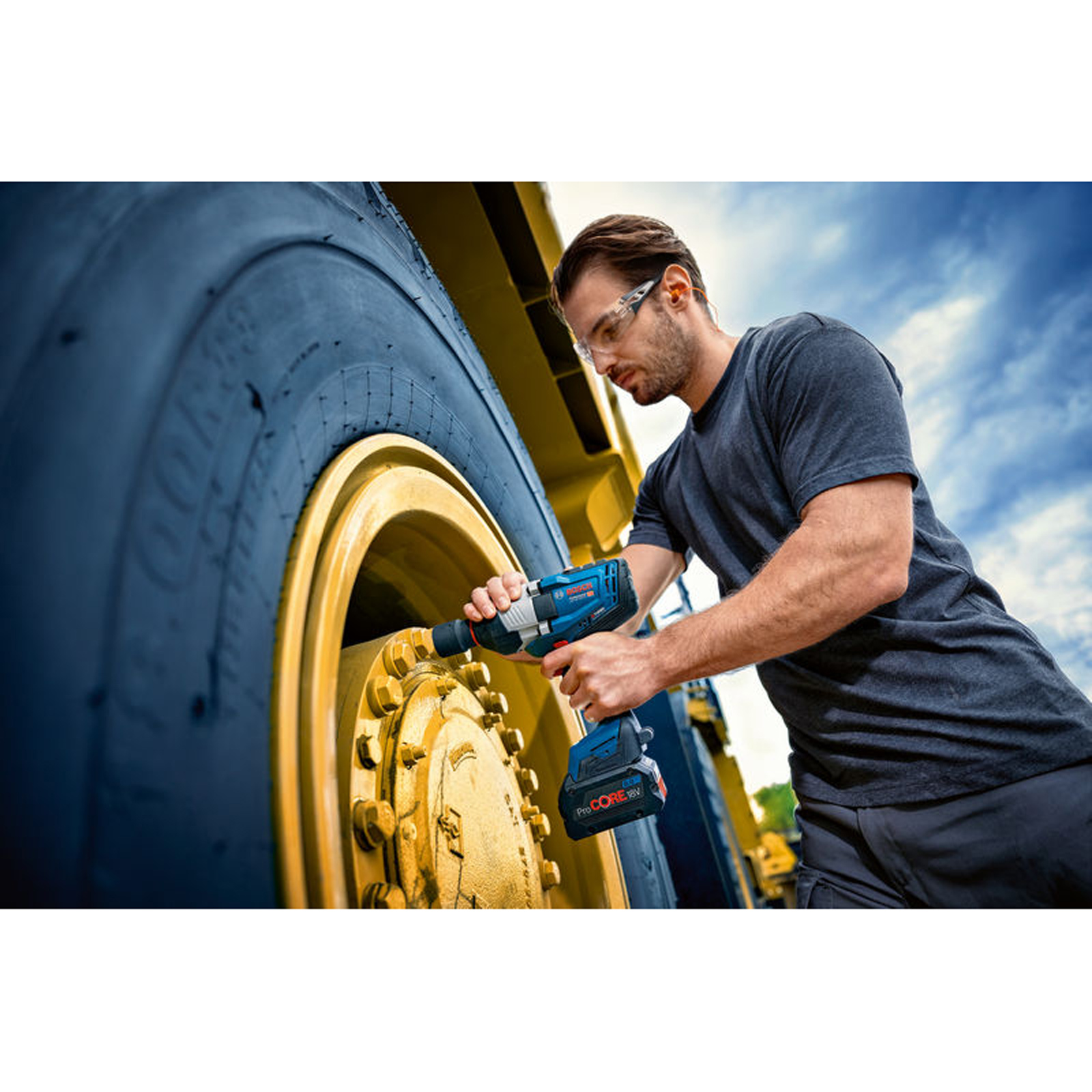 Akku-Drehschlagschrauber GDS 18V-1600 HC, Der GDS 18V-1600 HC Professional ist der außergewöhnlich starke 3/4 Zoll-Drehschlagschrauber mit BITURBO Brushless-Technologie für die rauesten, anspruchsvollsten Anwendungen. Der eingebaute bürstenlose Motor kombiniert die Leistung eines kabelgebundenen Werkzeugs mit kabelloser Freiheit und ist optimal abgestimmt auf ProCORE18V-Akkus für ein starkes Anziehmoment von 1.600 Nm und Losbrechmoment von 2.200 Nm. Dank des einstellbaren Modus Auto Bolt Release (ABR) wird vermieden, dass Metallbolzen oder Überwurfmuttern herunterfallen und verloren gehen, was für eine bequeme Handhabung sorgt. Hohe Vielseitigkeit bei der Leistungskontrolle bieten die 3 Geschwindigkeits-/Drehmomentstufen, die eine Anpassung an die jeweiligen Arbeitsanforderungen erlauben. Alle Werkzeugeinstellungen lassen sich bequem über die Bosch Toolbox App ausführen und individuell anpassen. Der außergewöhnlich starke GDS 18V-1600 HC Professional eignet sich für alle Metallanwendungen von M16 bis M33 wie Stahlbau, Rohrmontage sowie Wartung von Industriemaschinen und Baufahrzeugen. Dieser Drehschlagschrauber ist ideal, wenn Höchstleistung zum Entfernen von verrosteten und überstrichenen Bolzen und Überwurfmuttern gebraucht wird. Das Werkzeug ist kompatibel mit allen Akkus und Ladegeräten der AMPShare-Allianz einschließlich aller Akkus und Ladegeräte des Bosch Professional 18V Systems. Für maximale Leistung: ProCORE18V ≥ 5,5 Ah. Der Drehschlagschrauber verfügt über Electronic Cell Protection (ECP), Electronic Motor Protection (EMP), Werkzeugstatusanzeige mit LED-Licht, 3/4 Zoll-Werkzeugaufnahme mit Sprengring und Sicherungsbohrung, und einen Aufbewahrungsclip. L-BOXX 136 (1 600 A01 2G0). 1 x Bluetooth Low Energy Modul GCY 42 Professional (1 600 A01 6NH). 1/1 L-BOXX-Einlage für Gerät und Ladegerät (1 600 A02 58Y)