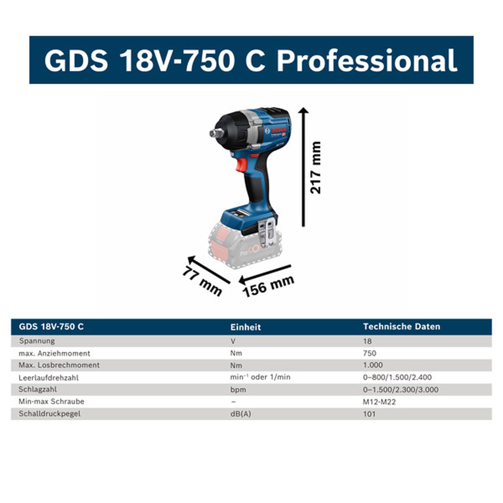- 1x Bosch Akku-Drehschlagschrauber GDS 18V-750 C
