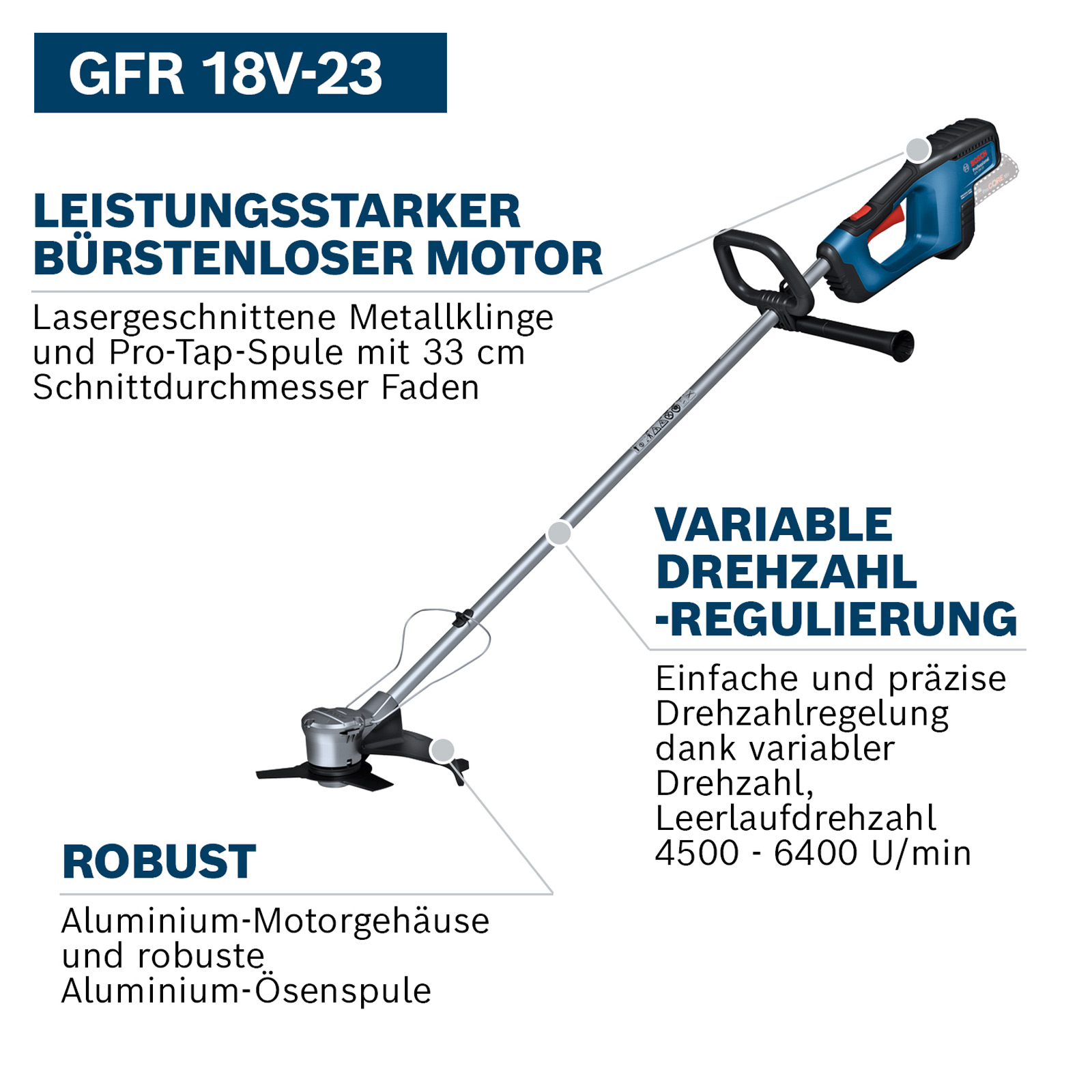 - 1x Bosch Akku-Freischneider GFR 18V-23 Solo