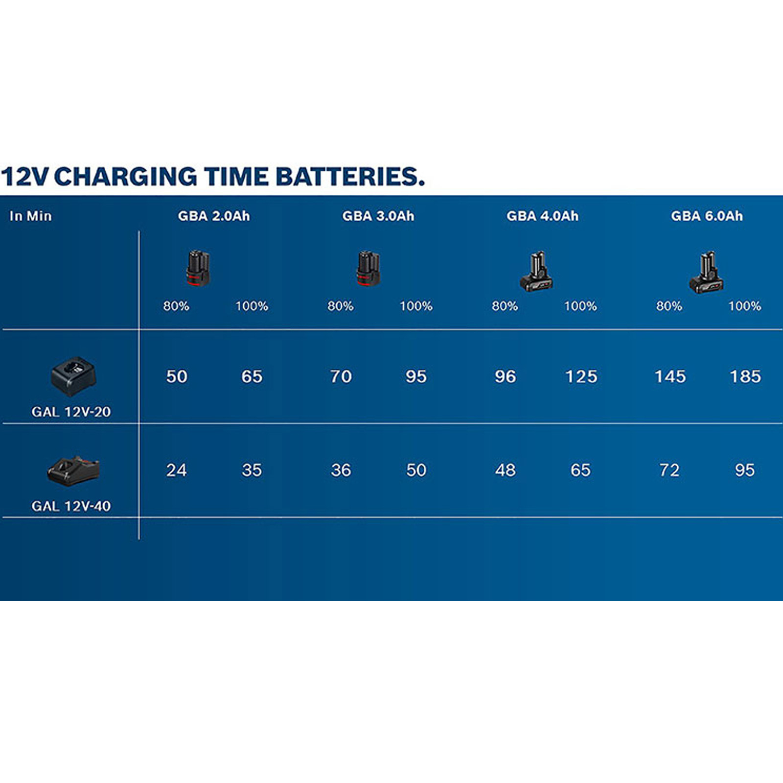 - Mindestens 20 % längere Laufzeit als bei herkömmlichen 12 V 2,5 Ah