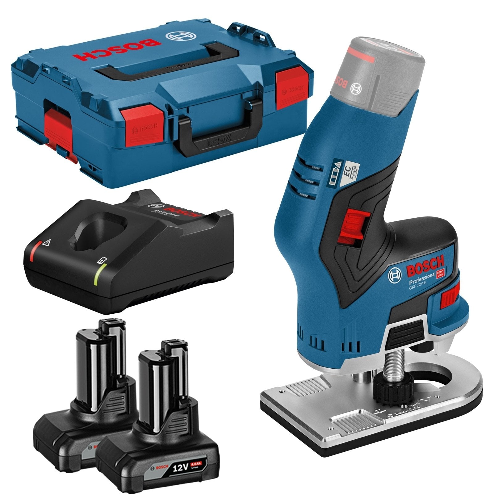 "Bosch Akku-Kantenfräse GKF 12V-8 12 V / 2x 4,0 Ah Akku + Ladegerät inkl. 2x Fräser in L-Boxx"