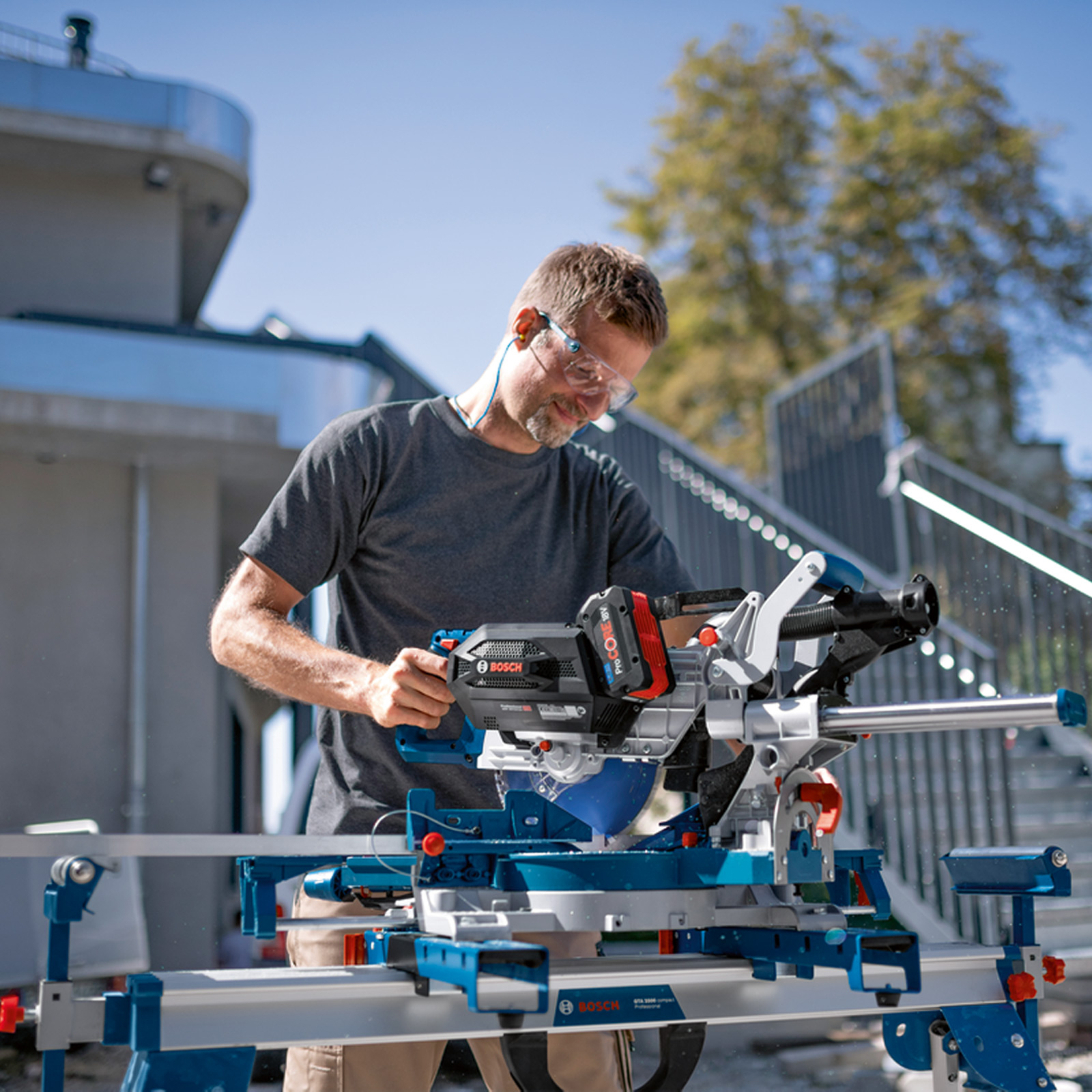 - Kabellose Flexibilität mit der Leistung eines Netzgeräts – die voll ausgestattete Kapp- und Gehrungssäge