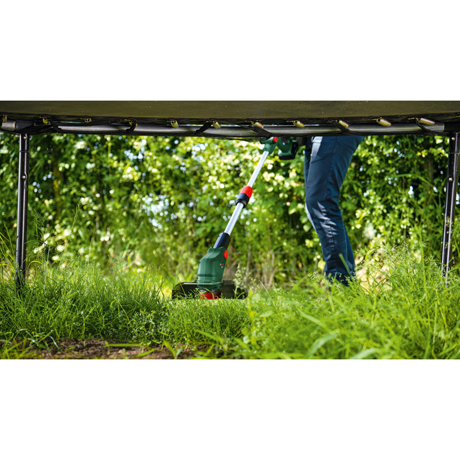 - Schwenkkopf für präzises Trimmen unter Bänken und an schwer erreichbaren Stellen