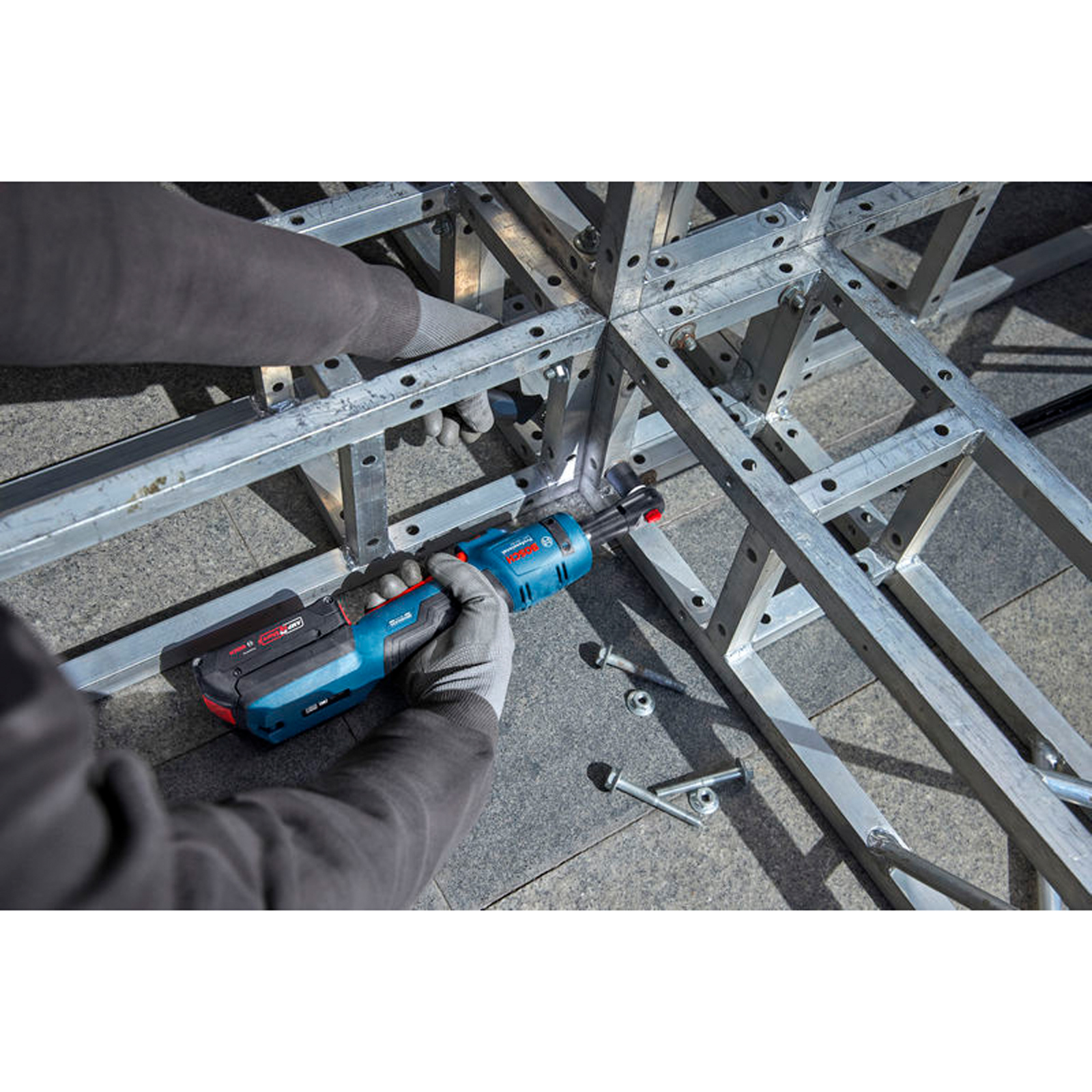 - Der Bosch Akku-Ratschenschlüssel GRC 18V-60 eignet sich zum Anziehen und Herausdrehen von Bolzen.