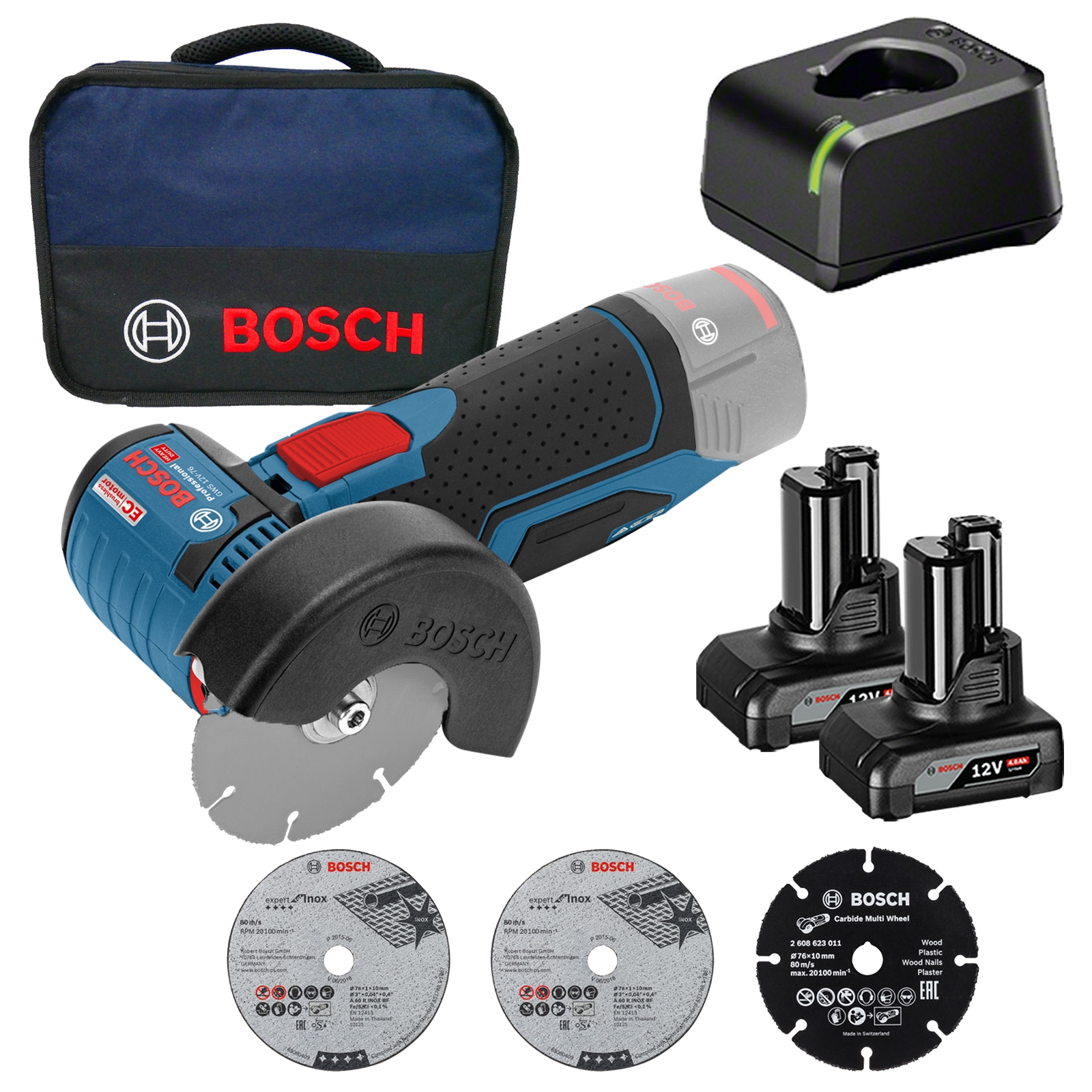"Bosch Akku-Winkelschleifer GWS 12V-76 Ø 76 mm / 2x 4,0 Ah Akku + Ladegerät im Softbag"