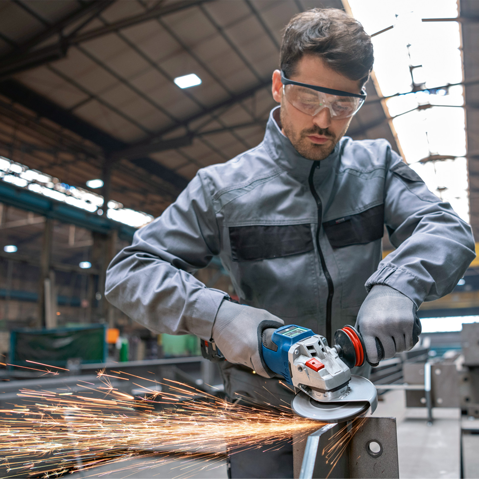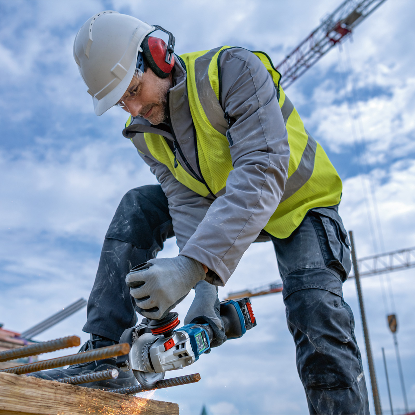 - Wie ein kabelgebundener Winkelschleifer mit 1.500 W: X-LOCK, PROtection-Schalter und Drehzahlvorwahl