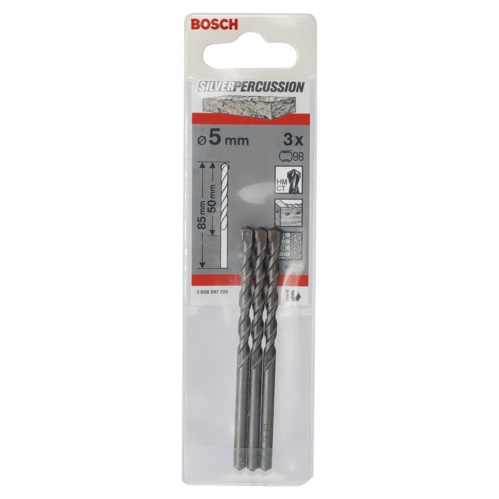 "Bosch 3x Betonbohrer CYL-3 Silver Percussion 5 x 50 x 85 mm Ø 4,5 mm - 2608597705"