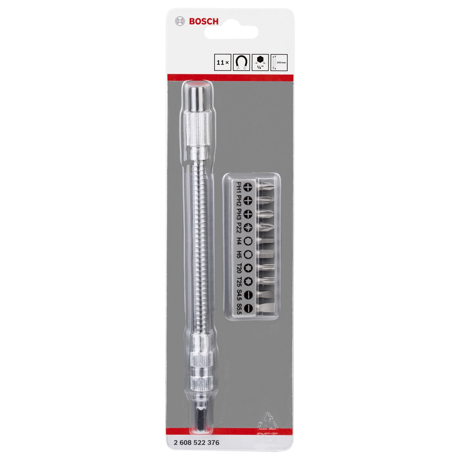 - 1x Bosch Bit Set 11tlg. mit flexibler Verlängerung aus Metall 200 mm