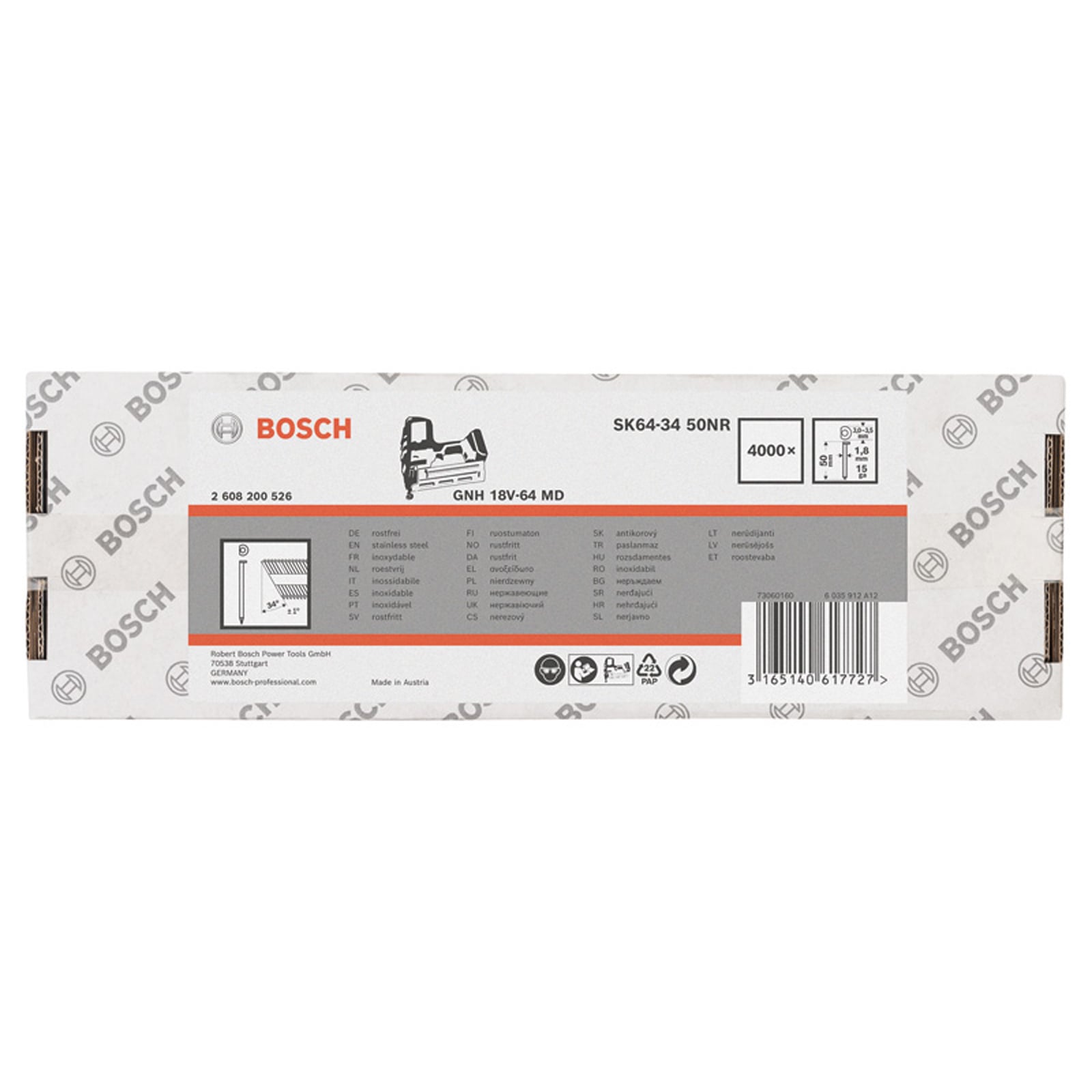 "Bosch DA Senkkopf-Stift, SK64-34 50NR, 1,8mm, 50mm, rostfrei, 4000er-Pack - 2608200526"