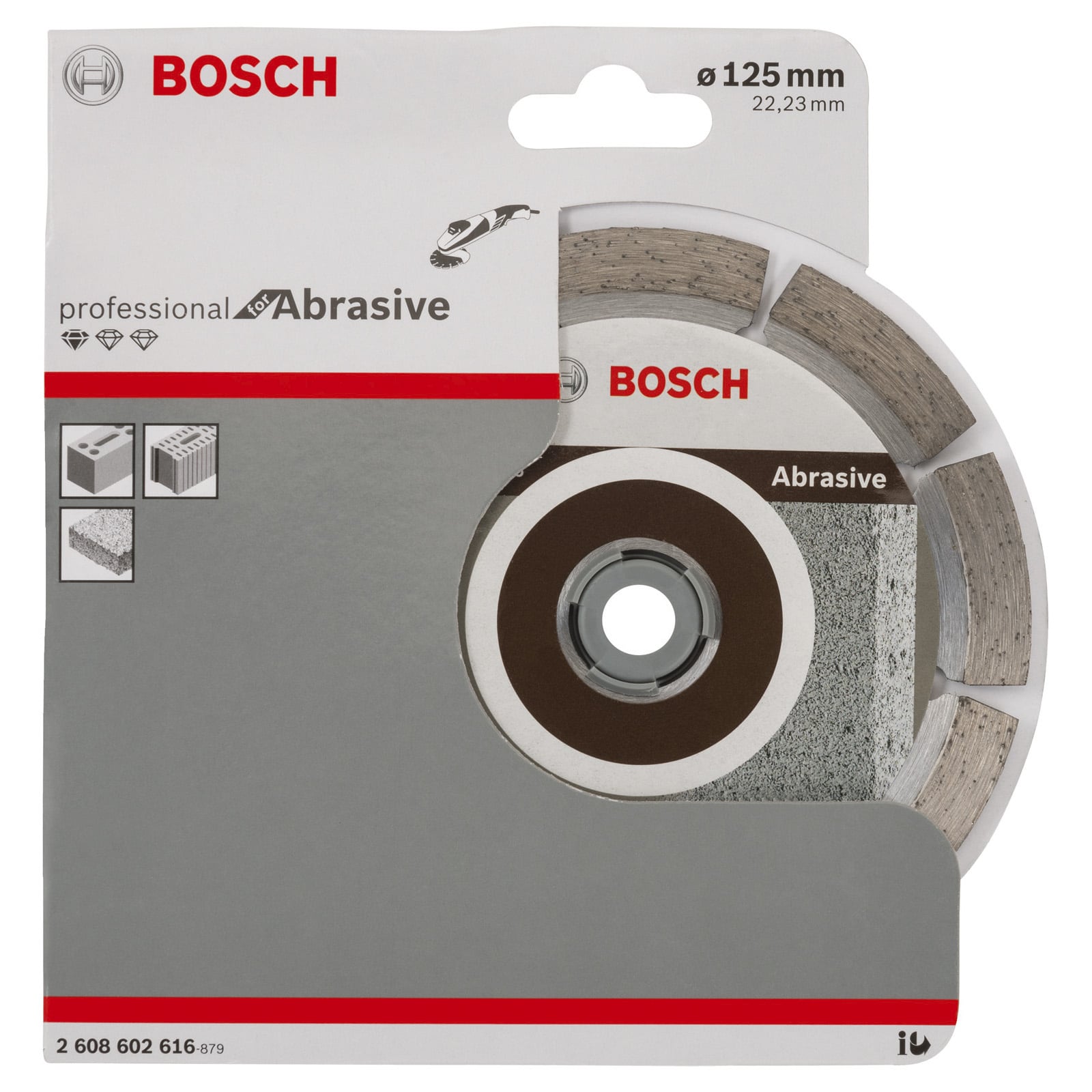 Die Diamanttrennscheibe Standard for Abrasive hat bei Arbeiten mit abrasivem Material aller Art eine hoher Lebensdauer. Die optimierte Diamantmatrix ermöglicht zuverlässige Ergebnisse, denn das Bosch-Kompetenzzentrum Diamant in der Schweiz gewährleistet den hohen Standard der Scheibe. Die Scheibe ist für das Schneiden von abrasivem Material aller Art geeignet.