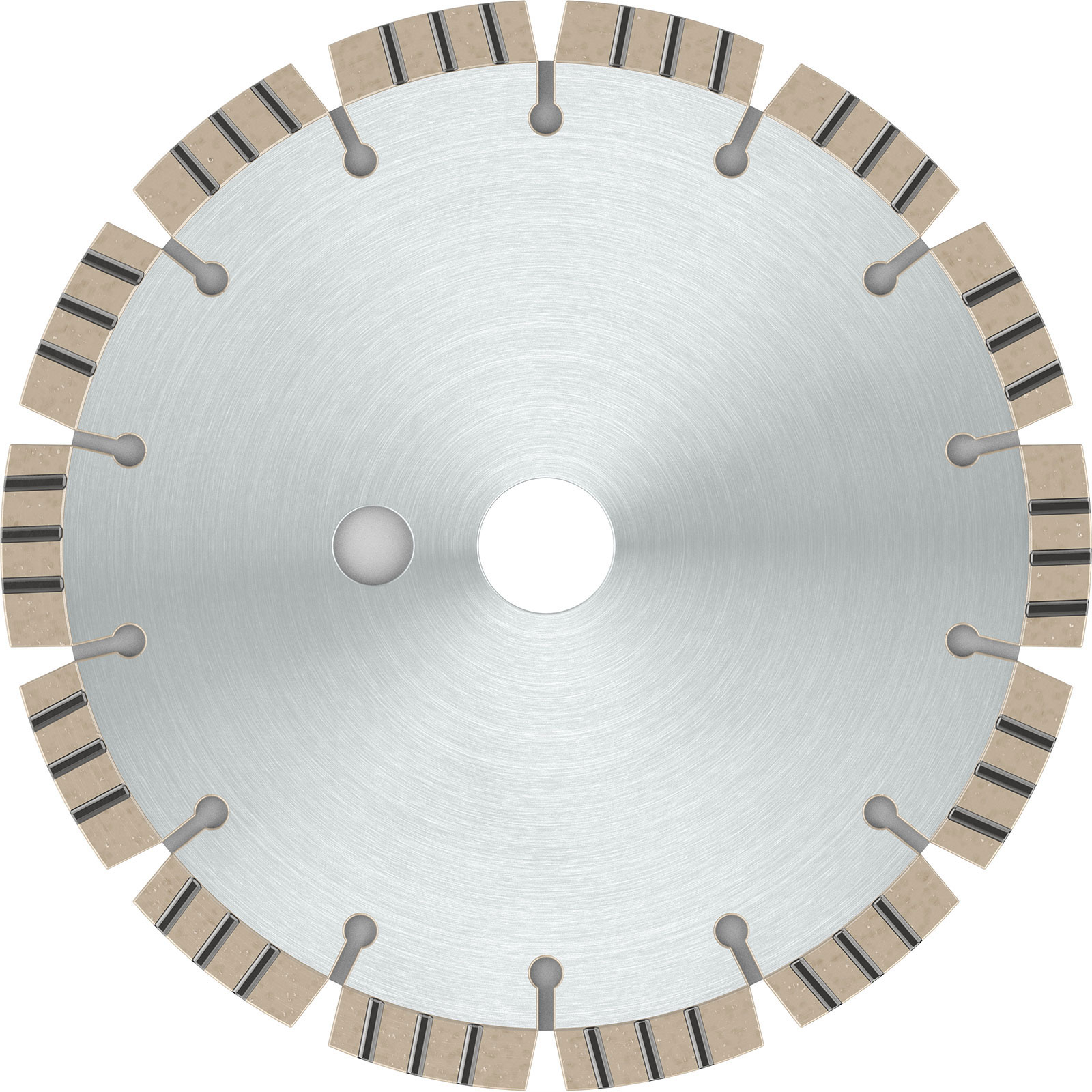 - Aussparungen im Diamantsegment minimieren Seitenreibung und ermöglichen Arbeiten mit hoher Geschwindigkeit.