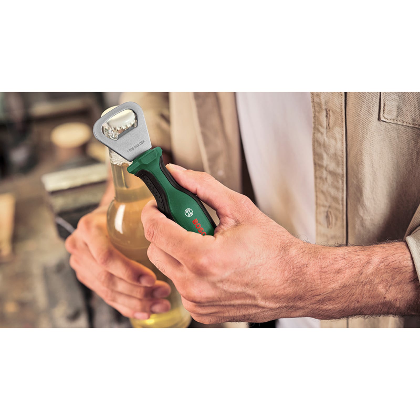 Handwerkzeuge Flaschenöffner. Der robuste Bosch Flaschenöffner für Werkstatt, Hobbyraum und Küche. Bequem zu halten und zu verwenden dank hoher Griffergonomie. Langlebige, dicke Metalllippe. Softgrip, Zweikomponentengriff für müheloses Anheben von Kronkorken. Der leistungsstarke Flaschenöffner für jede Gelegenheit