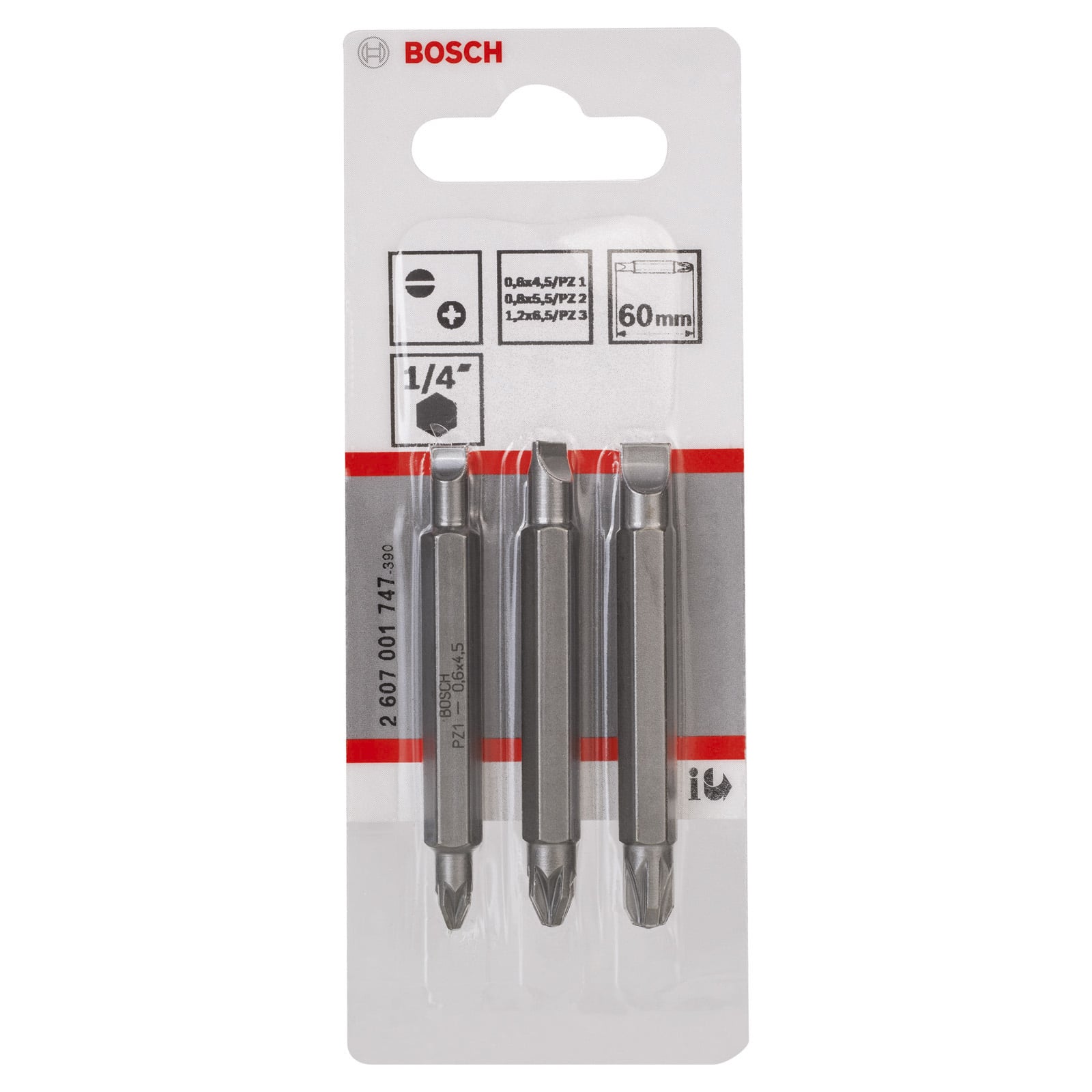- 1x Bosch Doppelklingen-Set, 3tlg. S0,6x4,5, PZ1, S0,8x5,5, PZ2, S1,2x6,5, PZ3, 60 mm -2607001747
